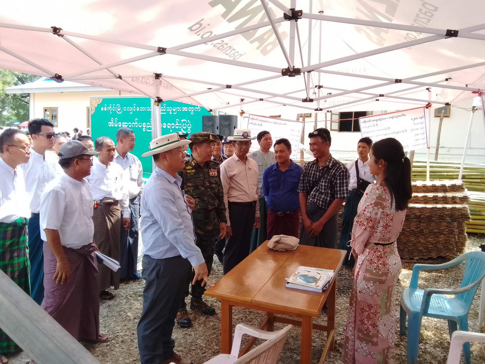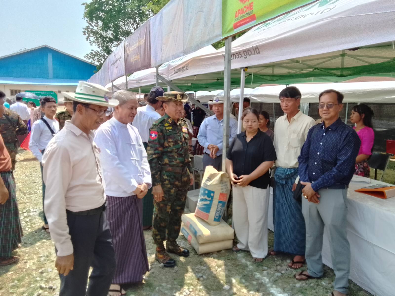 ထို့နောက် တိုင်းဒေသကြီးအစိုးရအဖွဲ့ လမ်းပန်းဆက်သွယ်ရေးဝန်ကြီး ဦးခင်မောင်အေးက အဖွင့်အမှာစကား ပြောကြားပြီး ကာကွယ်ရေးဦးစီးချုပ်ရုံး(ကြည်း)မှ ဒုတိယဗိုလ်ချုပ်ကြီးသက်ပုံ၊ တိုင်းဒေသကြီးအစိုးရအဖွဲ့ လူမှုရေးရာဝန်ကြီး ဦးညွန့်ဝင်းအောင်နှင့် လမ်းပန်းဆက်သွယ်ရေးဝန်ကြီး ဦးခင်မောင်အေးတို့က အိမ်ဆောက်ပစ္စည်းများ အရောင်းပြပွဲ ဖွင့်ပွဲအခမ်းအနားကို ဖဲကြိုးဖြတ်ဖွင့်လှစ်ပေးကာ အိမ်ဆောက်ပစ္စည်းများ အရောင်းပြပွဲတွင် ဆိုင်ခန်းများ ပြသရောင်းချနေမှုအခြေ အနေများကို ကြည့်ရှုအားပေးခဲ့ကြသည်။