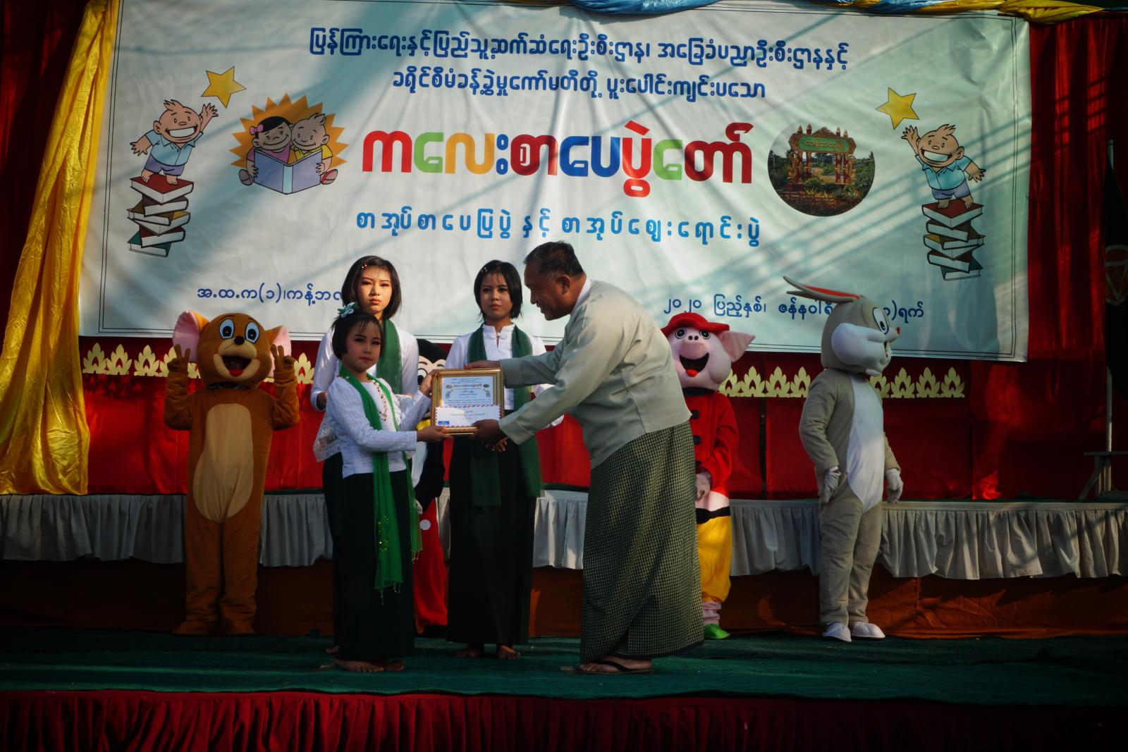 ထို့နောက် တာဝန်ရှိသူများက ကလေးစာပေပွဲတော် အောင်မြင်စွာကျင်းပနိုင်ရေး အလှူငွေများ ပါဝင်လှူဒါန်းကြသော အလှူရှင်များအား ဂုဏ်ပြုမှတ်တမ်းလွှာများ ပေးအပ်ခြင်း၊ ကဗျာရွတ်ဆို ပြိုင်ပွဲ၊ ပုံပြောပြိုင်ပွဲ၊ ကျပန်းစကားပြောပြိုင်ပွဲ၊ ပန်းချီပြိုင်ပွဲ ဆေးရောင်ခြယ်ပြိုင်ပွဲ၊ ဖူဆယ် ဘောလုံးပြိုင်ပွဲ၊ ထုပ်ဆီးတိုးပြိုင်ပွဲ၊ ပိုက်ကျော်ခြင်းပြိုင်ပွဲများတွင် ဆုရရှိသူများအား ဆုများ အသီးသီး ချီးမြှင့်ပေးအပ် ကြသည်။