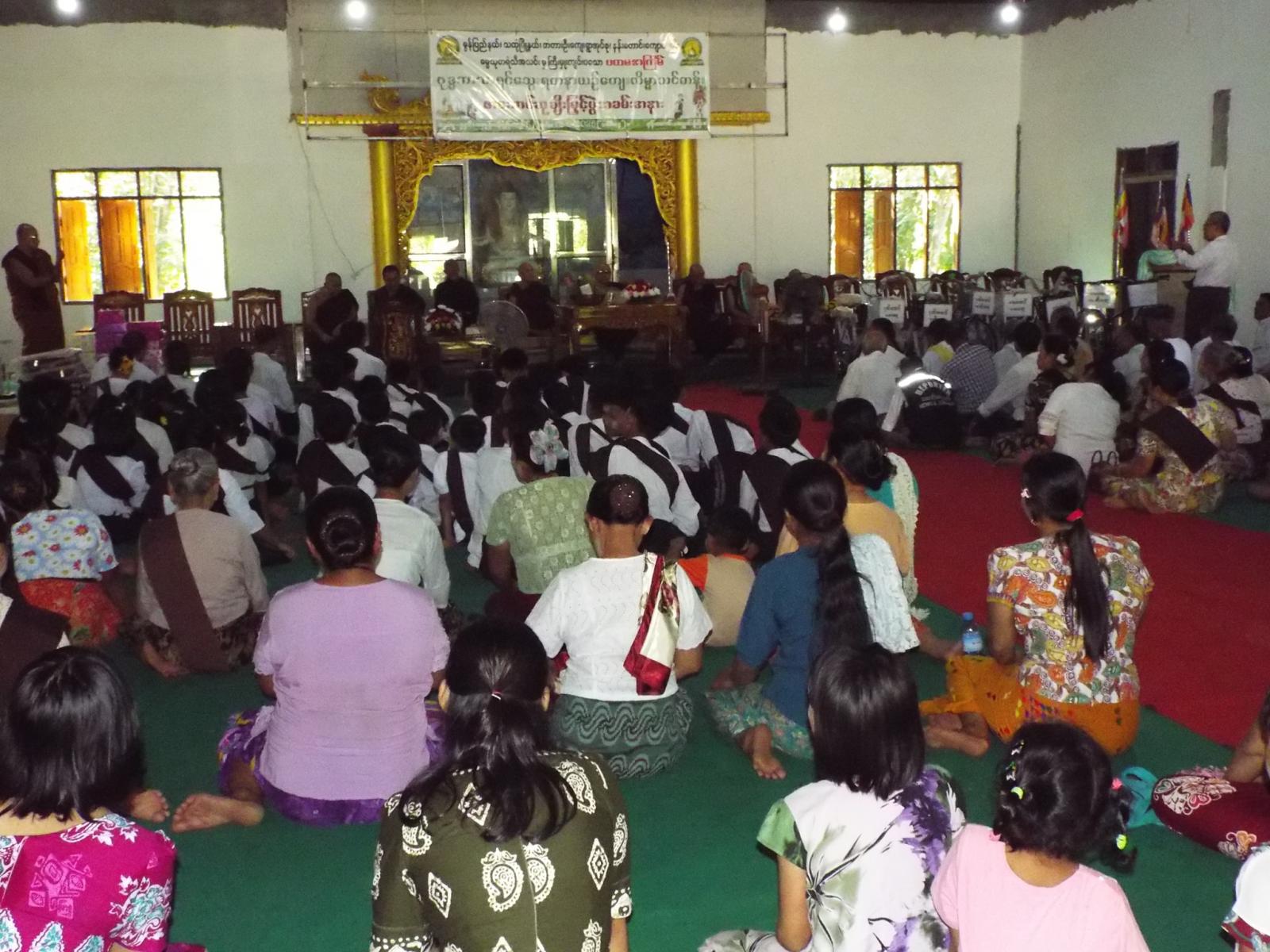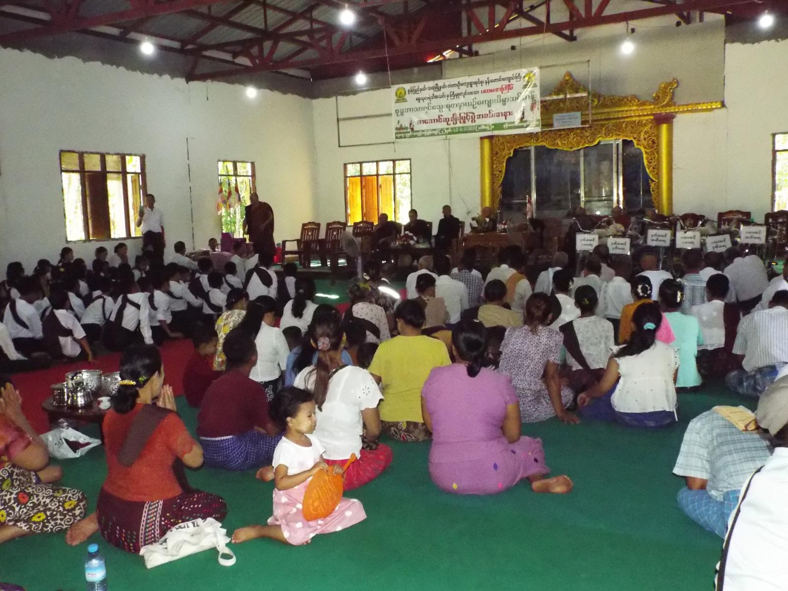 ရှေးဦးစွာ သံဃာတော်များနှင့် တက်ရောက်လာသူတို့က အခမ်းအနားအား နမောတဿသုံးကြိမ်ရွတ်ဆို၍ ဖွင့်လှစ်ကြပြီး မြို့နယ်သံဃနာယကဥက္ကဋ္ဌ ဆရာတော်ဘဒ္ဒန္တစန္ဒိမာထံမှ တက်ရောက်လာသူများနှင့် ယဉ်ကျေးလိမ္မာသင်တန်းသား ကျောင်းသား၊ ကျောင်းသူတို့က သီလခံယူဆောက်တည်ကြသည်။