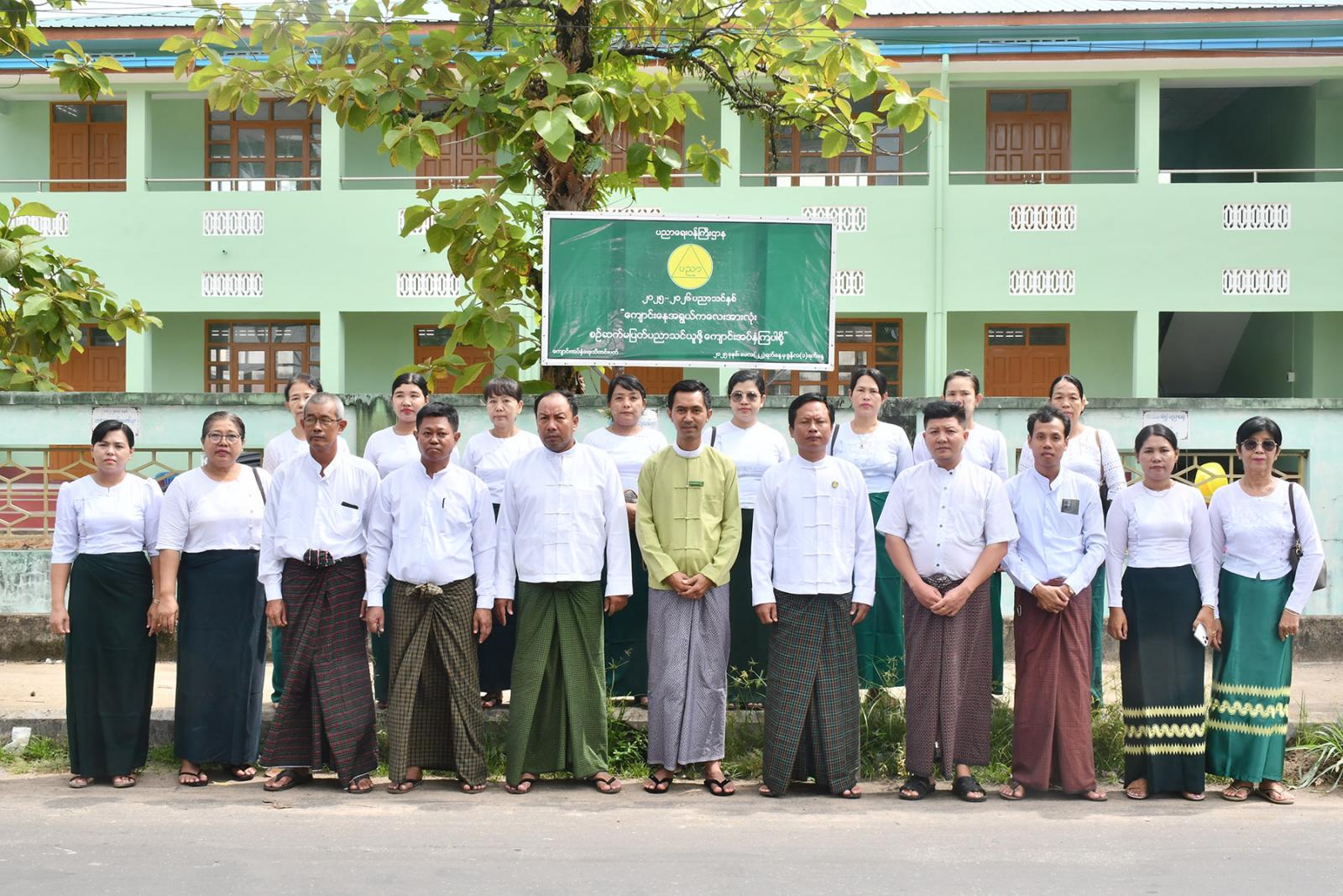 “ကျောင်းနေအရွယ်ကလေးအားလုံး စဉ်ဆက်မပြတ်ပညာသင်ယူဖို့ ကျောင်းအပ်နှံကြပါစို့” ကျောင်းအပ်နှံရေး သီတင်းပတ် အလျား(၆)ပေ အနံ(၃)ပေရှိ မြေစိုက်ပိုစတာကို မြို့နယ်စီမံအုပ်ချုပ်ရေးအဖွဲ့ဥက္ကဋ္ဌ ဦးပြည်ဟိန်းကျော်၊ ဒုတိယမြို့နယ်ပညာရေးမှူး ဦးလင်းယန်အေး၊ ဌာနဆိုင်ရာ တာဝန်ရှိသူများ၊ ကျောင်းအုပ်ကြီးများနှင့် ဆရာ/မများက အ.ထ.က(၁)၊ အ.လ.က(၅)နှင့် အ.ထ.က(၅) တို့တွင် စိုက်ထူခဲ့ကြသည်။