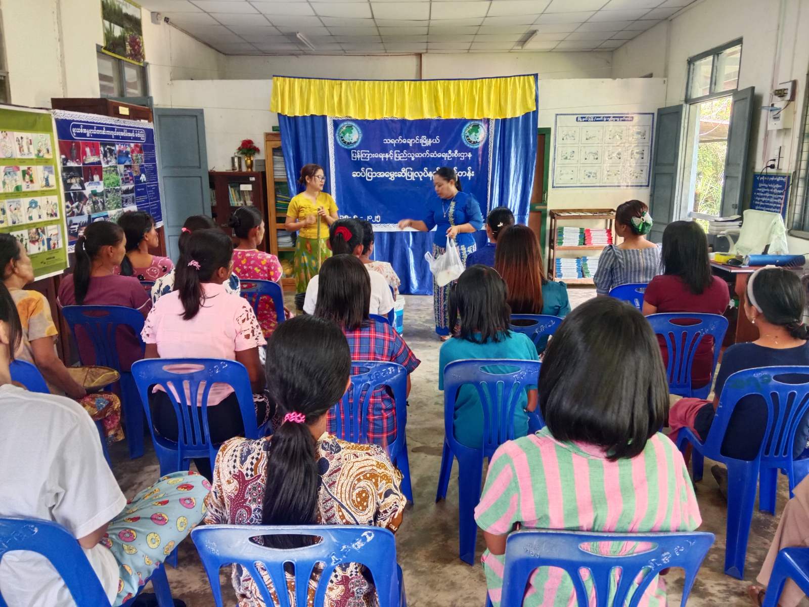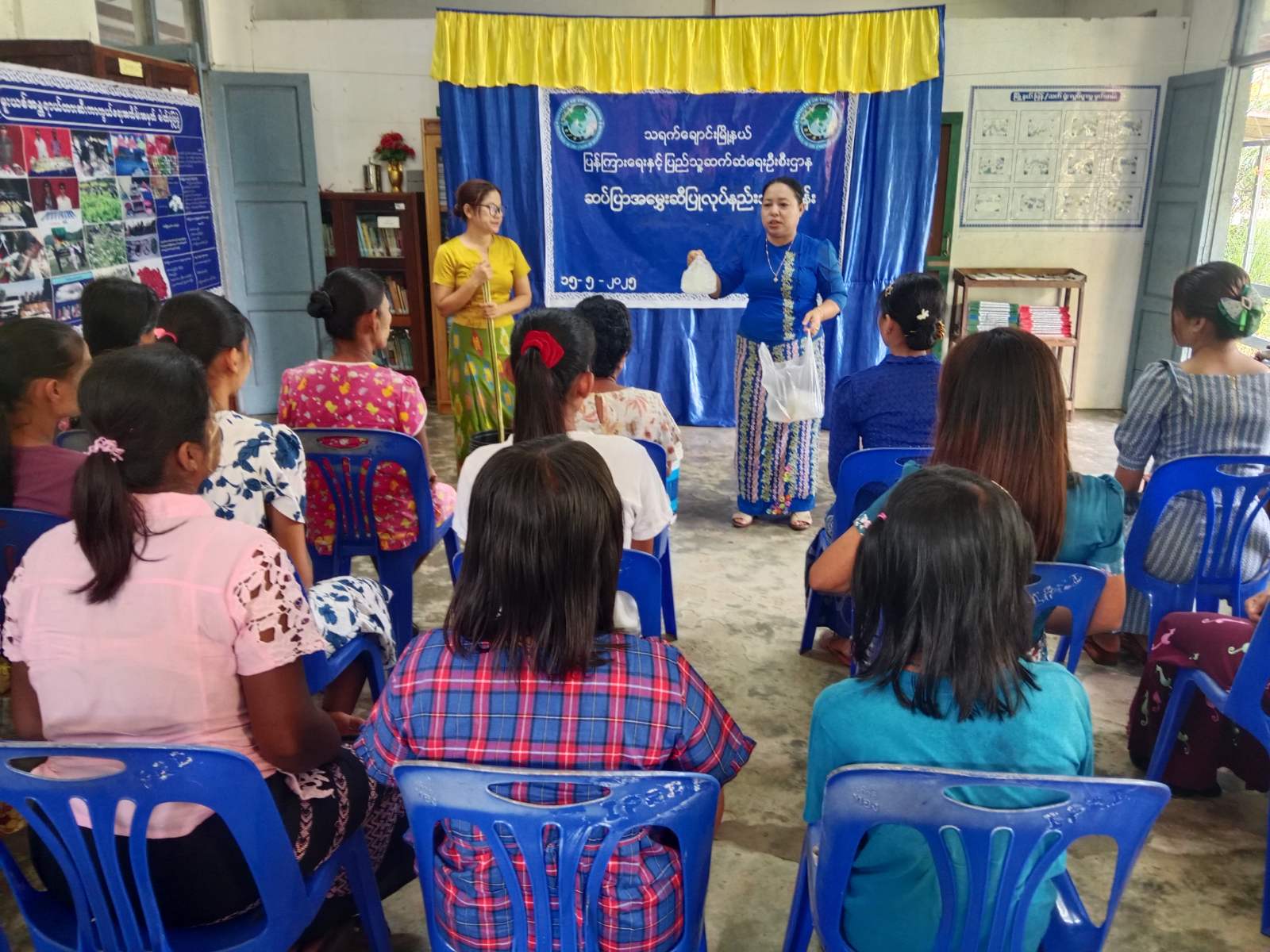 ရှေးဦးစွာ သင်တန်းတွင် သရက်ချောင်းမြို့နယ်၊ ပြန်ကြားရေးနှင့် ပြည်သူ့ဆက်ဆံရေးဦးစီးဌာနမှ ဦးစီးအရာရှိ ဒေါ်နန်းခလိုက်ရှုက သင်တန်းပြုလုပ်ရခြင်း၏ ရည်ရွယ်ချက် ရှင်းလင်းပြောကြားပြီးနောက် သင်တန်းနည်းပြ ဆရာမ မြို့နယ်လူမှုဝန်ထမ်းဦးစီးဌာနမှ မြို့နယ်ဦးစီးမှူး ဒေါ်မိုးမိုးအေးက သင်တန်းသူများအား လူသုံးကုန် ပစ္စည်းများဖြစ်သော ဆပ်ပြာရည်ပြုလုပ်မှုအဆင့်ဆင့်နှင့် အသုံးပြုနည်းများကို စာတွေ့/လက်တွေ့သင်ကြားပေးခဲ့ရာ သင်တန်းသူများကလည်း စိတ်ဝင်စားတွင် ကြည့်ရှုလေ့လာ၍ လက်တွေ့ပြုလုပ်ခဲ့ကြကြောင်း သိရသည်။