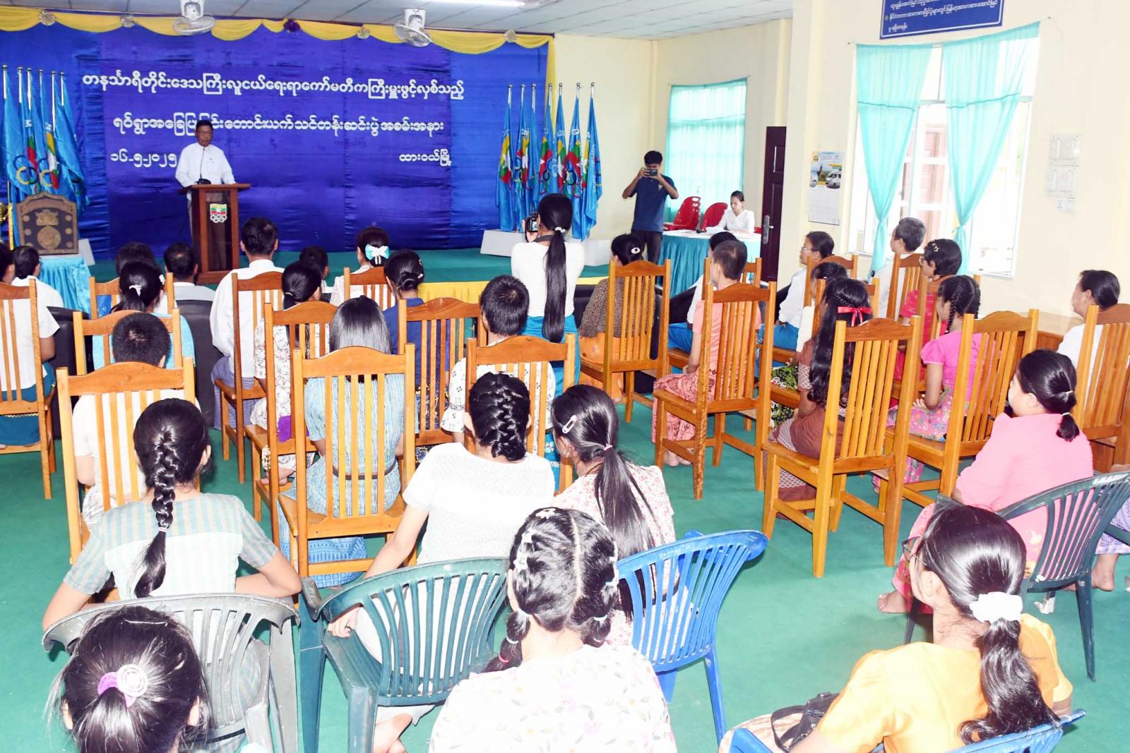 တနင်္သာရီတိုင်းဒေသကြီးလူငယ်ရေးရာကော်မတီက ကြီးမှူးဖွင့်လှစ်သည့် ရပ်ရွာအခြေပြု ခြင်းတောင်းယက်သင်တန်း ဆင်းပွဲအခမ်းအနားကိုယမန်နေ့မွန်းလွဲ ၃ နာရီ က ထားဝယ်မြို့၊ တိုင်ဒေသကြီး အားကစားနှင့်ကာယပညာဦးစီးဌာန၊ အစည်းအဝေးခန်းမ၌ကျင်းပသည်။
