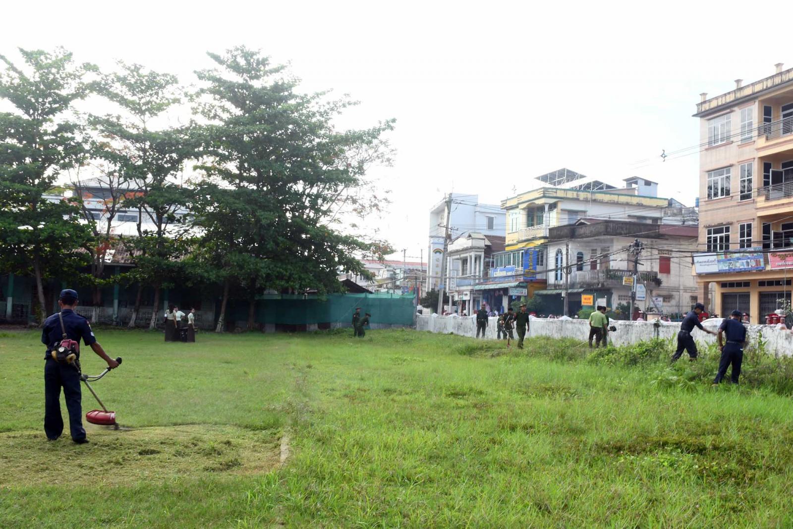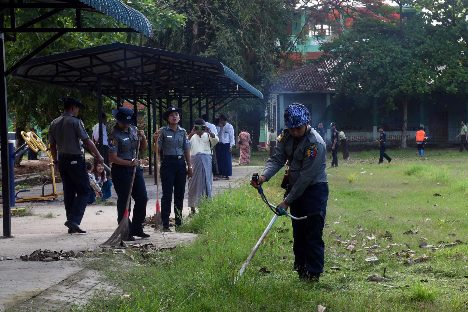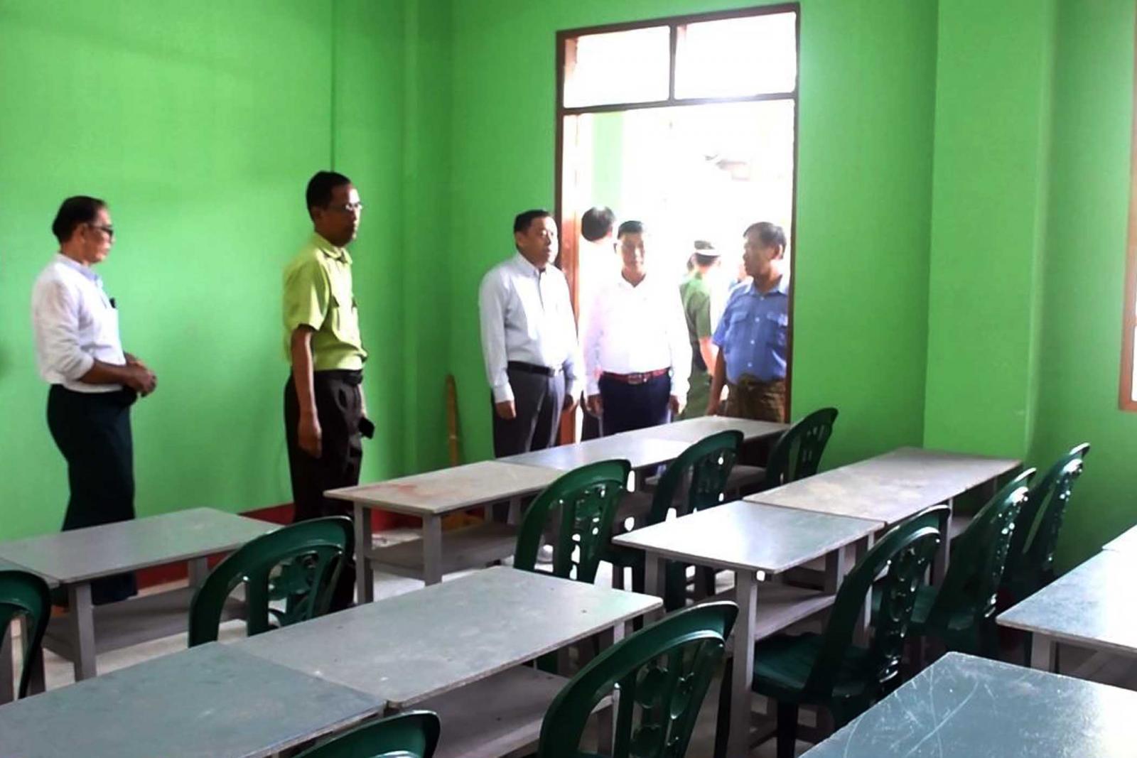ရှေးဦးစွာ တိုင်းဒေသကြီး ဝန်ကြီးချုပ် ဦးမြတ်ကိုက တိုင်းဒေသကြီး/ခရိုင်/မြို့နယ်ဌာနဆိုင်ရာများတို့က ကျောင်းဝင်းအတွင်း စုပေါင်းသန့်ရှင်းရေးလုပ်ငန်းများ ဆောင်ရွက်နေမှုအား ကြည့်ရှုအားပေးပြီး လိုအပ်သည်များကို တာဝန်ရှိသူများနှင့် ပေါင်းစပ်ညှိနှိုင်း ဆောင်ရွက်ပေးသည်။