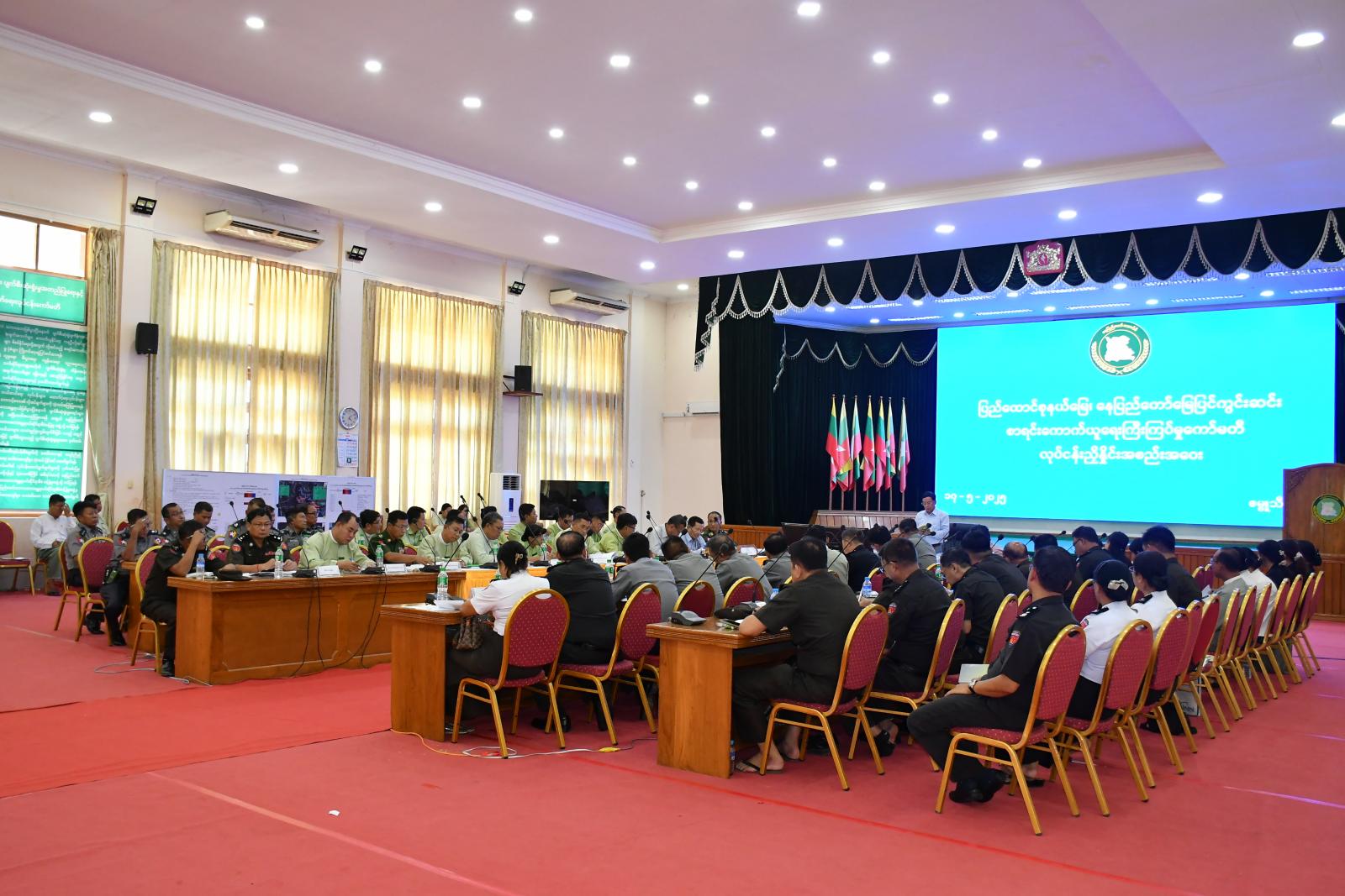 ဦးစွာ နေပြည်တော် မြေပြင်ကွင်းဆင်းစာရင်းကောက်ယူရေးကြီးကြပ်မှုကော်မတီဥက္ကဋ္ဌ၊ နေပြည်တော်ကောင်စီဥက္ကဋ္ဌ ဦးသန်းထွန်းဦးက ပါတီစုံဒီမိုကရေစီအထွေထွေရွေးကောက်ပွဲအတွက် နေပြည်တော်ကောင်စီနယ်မြေ၏ မြေပြင်လူဦးရေစာရင်းများ၊ မဲစာရင်းများပြည့်စုံမှန်ကန်ရေး ဆောင်ရွက်နေမှုများကို ဝိုင်းဝန်းဆွေးနွေးစိစစ်နိုင်ရန်ဖြစ်ကြောင်း၊ နေပြည်တော်ကောင်စီနယ်မြေအတွင်း နေပြည်တော်၊ ခရိုင်၊ မြို့နယ်၊ ရပ်ကွက်/ကျေးရွာ အုပ်စုများအလိုက် မြေပြင်ကွင်းဆင်းစာရင်းကောက်ယူရေးကြီးကြပ်မှုကော်မတီများနှင့် တစ်အိမ်တက်ဆင်း မြေပြင်ကွင်းဆင်း စာရင်းကောက်ယူရေးအဖွဲ့ (Working Group)များကို ဖွဲ့စည်းထားပြီး လုပ်ငန်းများလည်း အောင်မြင်စွာ ဆောင်ရွက်လျက်ရှိကြောင်း၊ နေပြည်တော်ကောင်စီ နယ်မြေတွင် မြေပြင်ကွင်းဆင်းစာရင်း ကောက်ယူရေးလုပ်ငန်းကို ၂၀၂၃ ခုနှစ်၊ ဇန်နဝါရီလ (၉) ရက်နေ့မှ (၃၁) ရက်နေ့အထိ အောင်မြင်စွာ ရာနှုန်းပြည့်ကောက်ယူနိုင်ခဲ့ကြောင်း၊ ပါတီစုံဒီမိုက ရေစီအထွေထွေရွေးကောက်ပွဲကျင်းပရန်အတွက် မဲဆန္ဒရှင်စာရင်းပြုစုရာတွင် အသက် ပြည့်မီသူတိုင်း ဆန္ဒမဲပေးနိုင်ရေး၊ နေပြည်တော်မြေပြင်ကွင်းဆင်း စာရင်းကောက်ယူရေး ကြီးကြပ်မှုကော်မတီအနေဖြင့် အသက် (၁၈) နှစ်နှင့်အထက် အတည်ပြု လူဦးရေစာရင်း(ပဉ္စမမူကြမ်း) အား မြေပြင်ကွင်းဆင်းစာရင်းကောက်ယူရေးကြီးကြပ်မှု ဗဟိုကော်မတီသို့ တင်ပြထားပြီးဖြစ်ကြောင်း၊ မှန်ကန်တိကျပြည့်စုံသော လူဦးရေစာရင်းနှင့် မဲစာရင်းများရရှိစေရေးအတွက် ရပ်/ ကျေးအဆင့်မှစ၍ အဆင့်ဆင့်သော တာဝန်ရှိသူအားလုံးက စနစ်တကျ ပြုစုဆောင်ရွက်နေရမှာဖြစ်ကြောင်းနှင့် အလေးထားကြပ်မတ်ဆောင်ရွက်ရန်လိုကြောင်း၊ နေပြည် တော်မြေပြင်ကွင်းဆင်းစာရင်းကောက်ယူရေးကြီးကြပ်မှုကော်မတီနှင့် အဆင့်ဆင့်သောကော်မတီများမှ လုပ်ငန်းတာဝန်များကို ရွေးကောက်ပွဲမကျင်းပမှီအချိန်ထိ ဆောင်ရွက်နေရမှာဖြစ်ကြောင်း၊ လုပ်ငန်းများအောင်မြင်နိုင်ရေးအတွက် သက်ဆိုင်ရာဌာနဆိုင်ရာများ၊ တာဝန်ရှိသူများမှ အမြဲမပြတ်ဆွေးနွေးညှိနှိုင်းအလေးနက်ထား ဆောင်ရွက်သွားရန်တို့ကို မှာကြားခဲ့သည်။