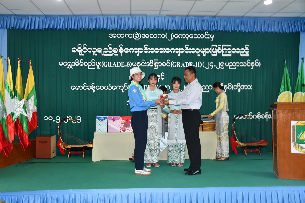 အဆိုပါ အခမ်းအနားတွင် ကော့သောင်းမြို့ စစ်ဗျူဟာအဖွဲ့ (အခြေချ)ကော့သောင်းမှ စစ်ဗျူဟာမှူး ဗိုလ်မှူးကြီးအောင်ကိုလတ်က အဖွင့်အမှာစကားပြောကြားပြီး ကော့သောင်းခရိုင် စီမံအုပ်ချုပ်ရေးအဖွဲ့ဥက္ကဋ္ဌကိုယ်စား ခရိုင်စီမံအုပ်ချုပ်ရေးအဖွဲ့အတွင်းရေးမှူး ဒုတိယရဲမှူးကြီး ခင်နိုင်ကလူရည်ချွန်မောင်မယ်များအား ဂုဏ်ပြုချီးမြှင့်စကားပြောကြားခဲ့သည်။ယင်းနောက် ၂၀၂၄-၂၀၂၅ ပညာသင်နှစ် Grade-9 လူရည်ချွန် မရွှေအိမ်စည်ဖူး၊၂၀၂၄-၂၀၂၅ ပညာသင်နှစ် Grade-11 လူရည်ချွန် မနှင်းအိန္ဒြာခင်၊ ၂၀၂၃-၂၀၂၄ ပညာသင်နှစ် Grade-9 လူရည်ချွန် မောင်ခန့်ဝေယံကျော်တို့အား ဂုဏ်ပြုဆုများချီးမြှင့်ရာ ကော့သောင်းမြို့စစ်ဗျူဟာအဖွဲ့ (အခြေချ) ကော့သောင်းမှ စစ်ဗျူဟာမှူးဗိုလ်မှူးကြီးအောင်ကိုလတ်က ရွှေသားလက်စွပ်များအားလည်းကောင်း၊ ကော့သောင်းခရိုင်စီမံအုပ်ချုပ်ရေးအဖွဲ့ဥက္ကဋ္ဌကိုယ်စား ခရိုင်စီမံအုပ်ချုပ်ရေးအဖွဲ့အတွင်းရေးမှူး ဒုတိယရဲမှူးကြီးခင်နိုင်က ဂုဏ်ပြုဆုဒိုင်းများနှင့်ဂုဏ်ပြုမှတ်တမ်းများအားလည်းကောင်း၊ ခရိုင်ပညာရေးမှူးဆရာကြီးဒေါ်ဝင်းမာက လူရည်ချွန်စလွယ်များအား ချီးမြှင့်ခဲ့ကြပြီး မြို့နယ်စီမံအုပ်ချုပ်ရေးအဖွဲ့ဥက္ကဋ္ဌဦးနိုင်လင်းထက်က လူရည်ချွန်ရရှိအောင် ကြိုးစားသင်ကြား ပေးခဲ့သော ဆရာ၊ဆရာမများအား ဂုဏ်ပြုဆုများ ချီးမြှင့်ခဲ့သည်။