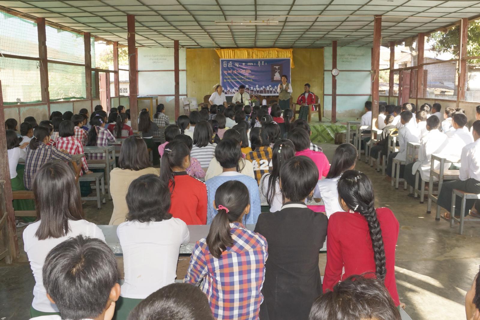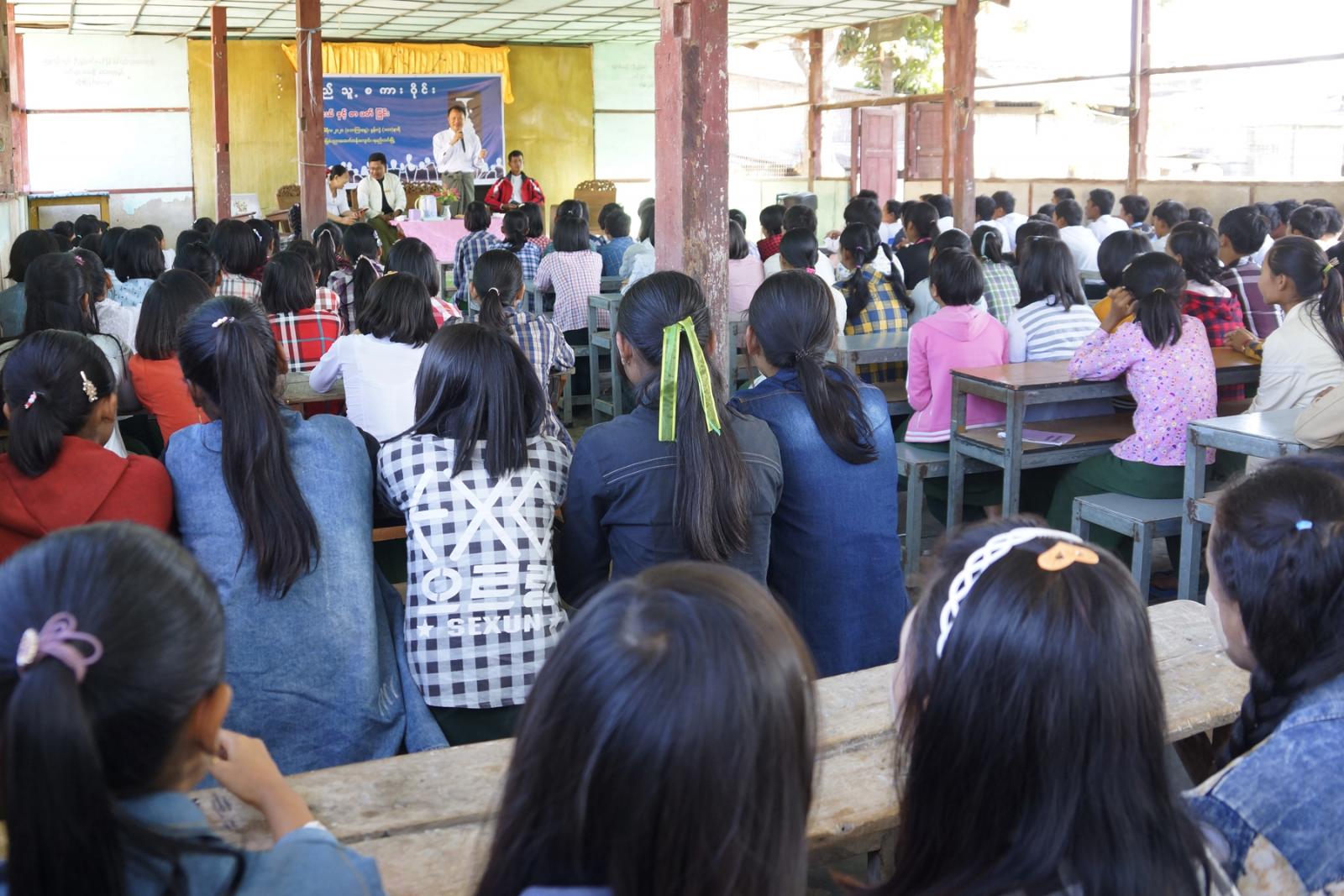 ထို့နောက် တိုင်းဒေသကြီး လွှတ်တော်ကိုယ်စားလှယ် ဦးဇော်ဝင်းမှ ကျောင်းသား၊ ကျောင်းသူများ တိုင်းပြည် အားထားရသည့် လူတော်လူကောင်းများ ဖြစ်စေရေးနှင့် စာပေအသိပညာ ဗဟုသုတတိုးပွားကာ လူစွမ်းအား အရင်းအမြစ်များ ဖွံဖြိုးတိုးတက်စေရေး ရှင်းလင်း ပြောကြားခဲ့ကြောင်း သိရသည်။