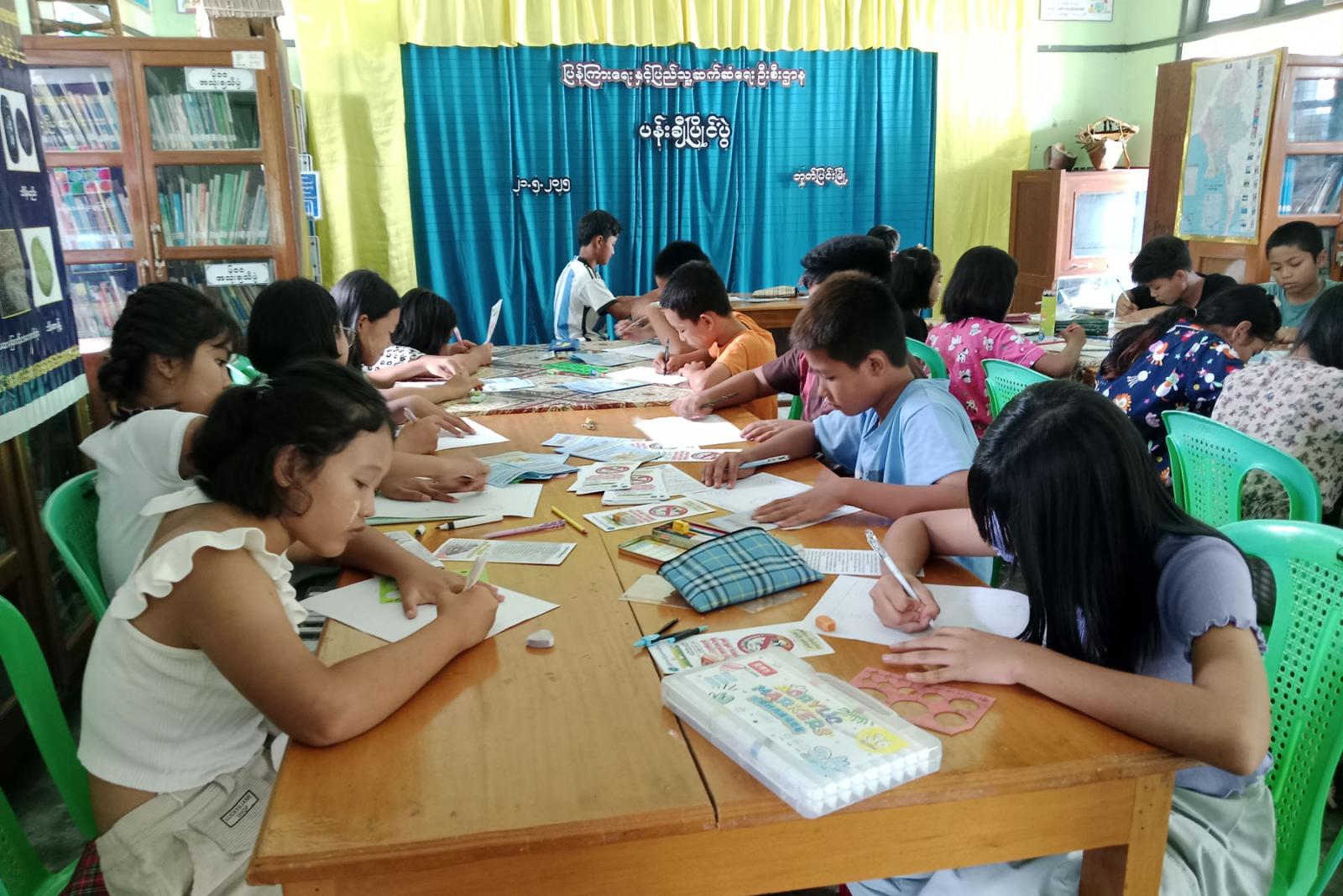 ဆက်လက်၍ ပြန်ကြားရေးနှင့်ပြည်သူ့ဆက်ဆံရေးဦးစီးဌာနမှ ခင်းကျင်းပြသထားသည့် အသိပညာပေးစာအုပ်စာစောင်များ၊ မူးယစ်ဆေးဝါးအန္တရာယ်အအသိပညာပေး နံရံကပ်စာစောင်များကို ကျောင်းသား ကျောင်းသူများနှင့်ကလေးငယ်များက လေ့လာဖတ်ရှုခဲ့ကြကြောင်းသိရသည်။