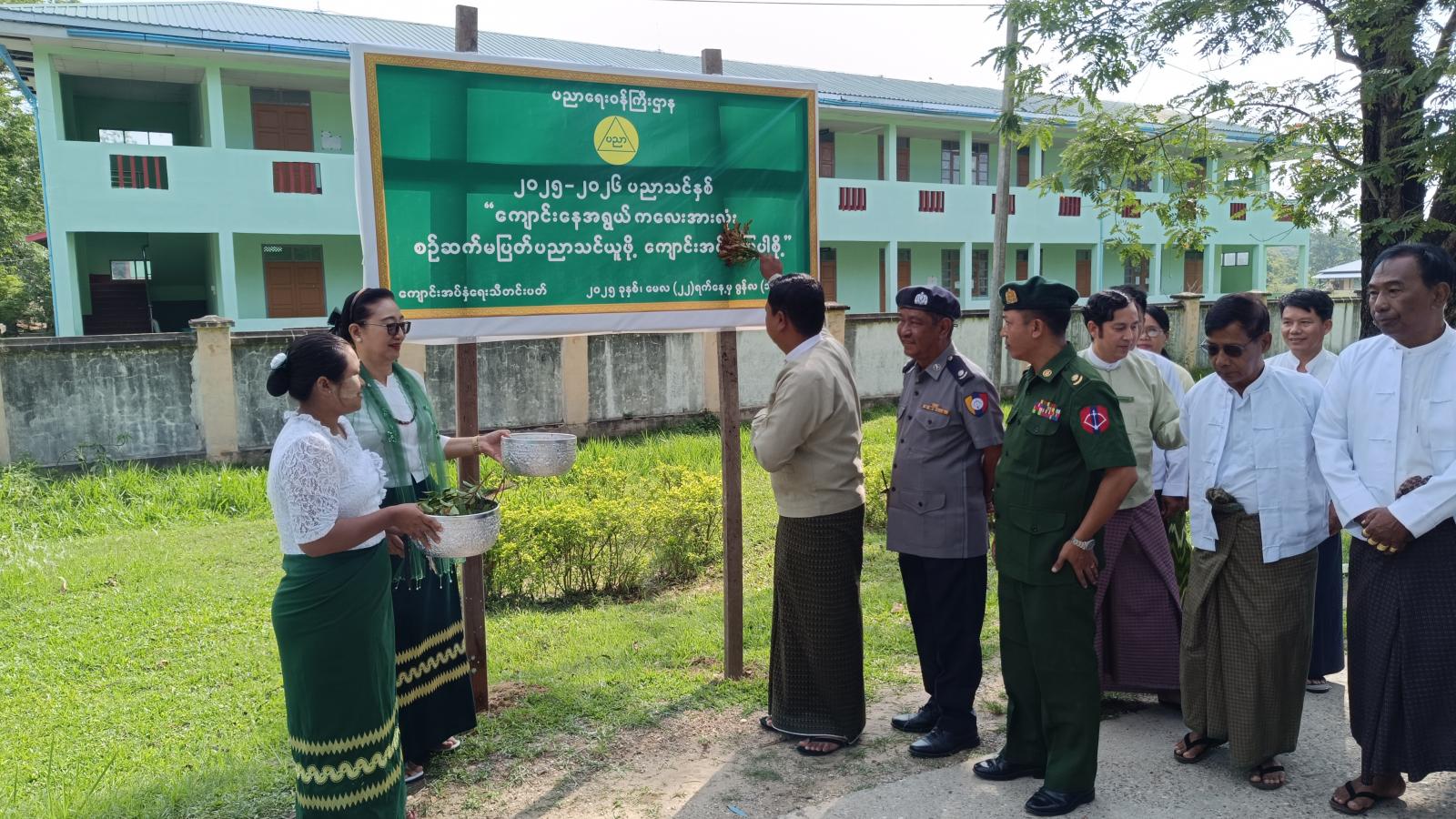 ရှေးဦးစွာခရိုင်စီမံအုပ်ချုပ်ရေးအဖွဲ့ဥက္ကဋ္ဌ ဦးနေထွန်းအောင်နှင့်အဖွဲ့ဝင်များ၊ မြို့နယ်စီမံအုပ်ချုပ်ရေးအဖွဲ့ ဥက္ကဋ္ဌ ဦးကျော်ဆန်းနှင့်အဖွဲ့ဝင်များ၊ ခရိုင်/မြို့နယ်ဌာနဆိုင်ရာများ၊ ခရိုင်ပညာရေးမှူး (တာဝန်ခံ)၊ မြို့နယ်ပညာရေးမှူး၊ ခရိုင်/မြို့နယ်အမျိုးသမီးရေးရာ အဖွဲ့ဝင်များနှင့် မြို့နယ်မိခင်နှင့်ကလေး အသင်းအဖွဲ့များက ကျောင်းအပ်နှံရေးနေ့ မြေစိုက်ပိုစတာကိုစိုက်ထူခဲ့ကြပြီး တာဝန်ရှိသူများက အမွေးနံ့သာပက်ဖျန်းခြင်း၊ စုပေါင်းမှတ်တမ်းဓါတ်ပုံရိုက်ကူးခြင်းများကို ဆောင်ရွက်ခဲ့ကြသည်။
