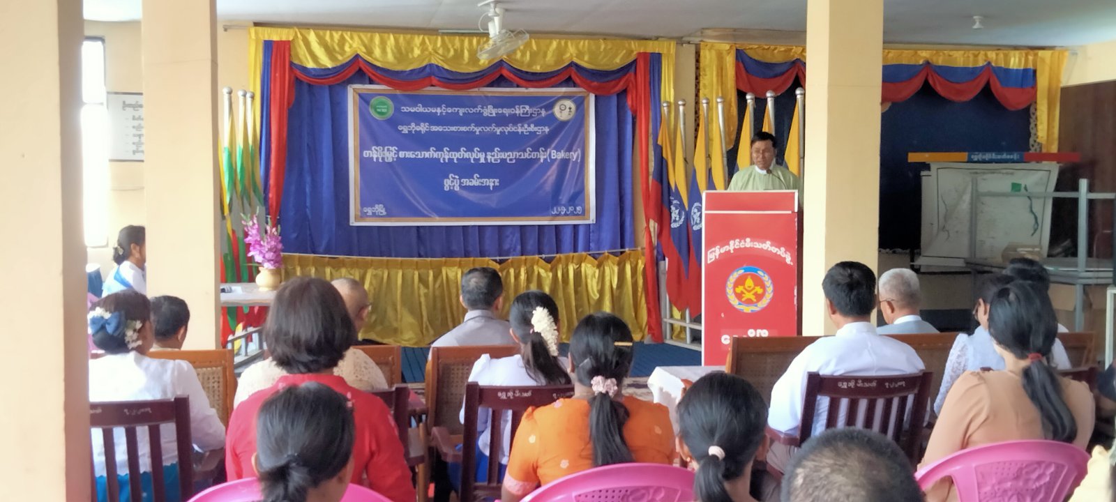 စစ်ကိုင်းတိုင်းဒေသကြီး၊ ရွှေဘိုမြို့၌ တန်ဖိုးမြှင့်စားသောက်ကုန်(Bakery အမျိုးမျိုး)ထုတ်လုပ်မှု နည်းပညာသင်တန်း အမှတ်စဉ်(၁/၂၀၂၅) သင်တန်းဖွင့်ပွဲအခမ်းအနားကို ယနေ့နံနက် (၁၀:၀၀) နာရီက ရွှေဘိုခရိုင် မီးသတ်ဦးစီးဌာန၌ ကျင်းပပြုလုပ်ခဲ့ကြောင်း သိရသည်။