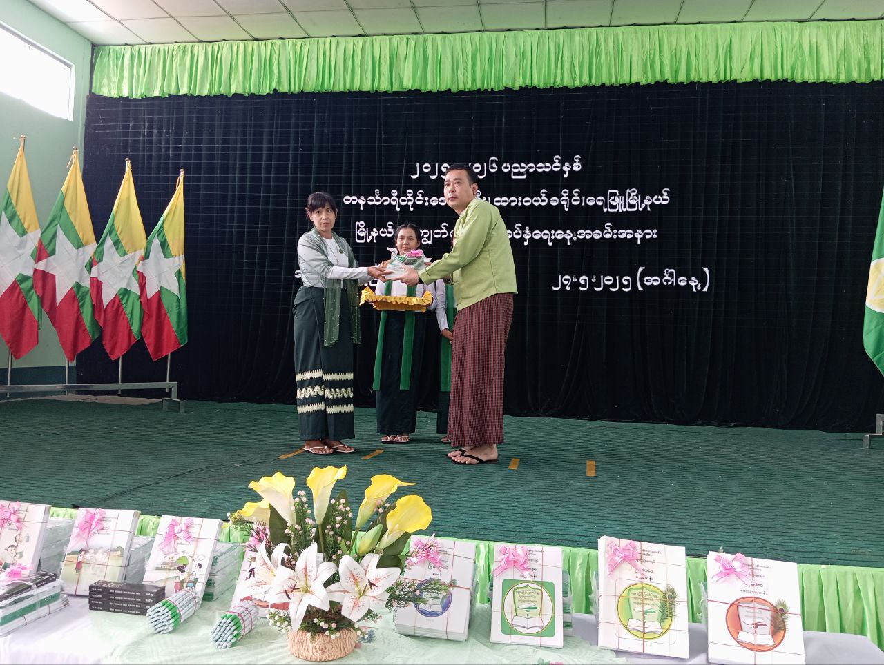 ဆက်လက်၍ ၂၀၂၅-၂၀၂၆ ပညာသင်နှစ်အတွက် ပညာရေးဝန်ကြီးဌာနမှ ပေးအပ်သော ကျောင်းသုံး ပုံနှိပ်ပြဋ္ဌာန်းစာအုပ်များ၊ ဗလာစာအုပ်၊ ခဲတံနှင့် ကျောင်းဝတ်စုံများအား မြို့နယ် စီမံအုပ်ချုပ်ရေးအဖွဲ့ဥက္ကဋ္ဌ ဦးဇင်လင်းနိုင်နှင့် တာဝန်ရှိသူများက ပေးအပ်ခဲ့ရာ ကျောင်းသား ကျောင်းသူများက လက်ခံရယူခဲ့ကြောင်း သိရသည်။