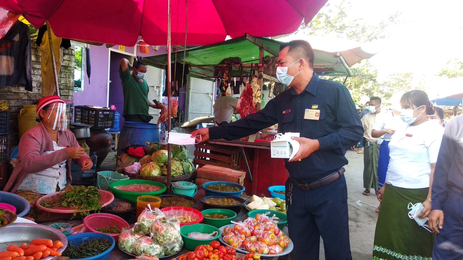အဆိုပါ Mask Campaign ဆောင်ရွက်ရာသို့ မြို့နယ် ကိုဗစ်-၁၉ရောဂါ ထိန်းချုပ်ရေးနှင့် အရေးပေါ် တုံ့ပြန်ရေးကော်မတီဝင်များ၊ ရဲတပ်ဖွဲ့ဝင်များ၊ မီးသတ်တပ်ဖွဲ့ဝင်များ၊ မြို့နယ်စည်ပင် သာယာရေး ကော်မတီနှင့် ရပ်ကွက်အုပ်ချုပ်ရေးမှူးများ ပါဝင်သော ပူးပေါင်းအဖွဲ့မှ ပါးစပ် နှာခေါင်းစည်း (mask) များအား လမ်းသွားလမ်းလာများ၊ ရပ်ကွက်အတွင်းရှိနေအိမ်များ၊ ဈေးများတွင် လိုက်လံဝေငှခဲ့ကြောင်း သိရသည်။