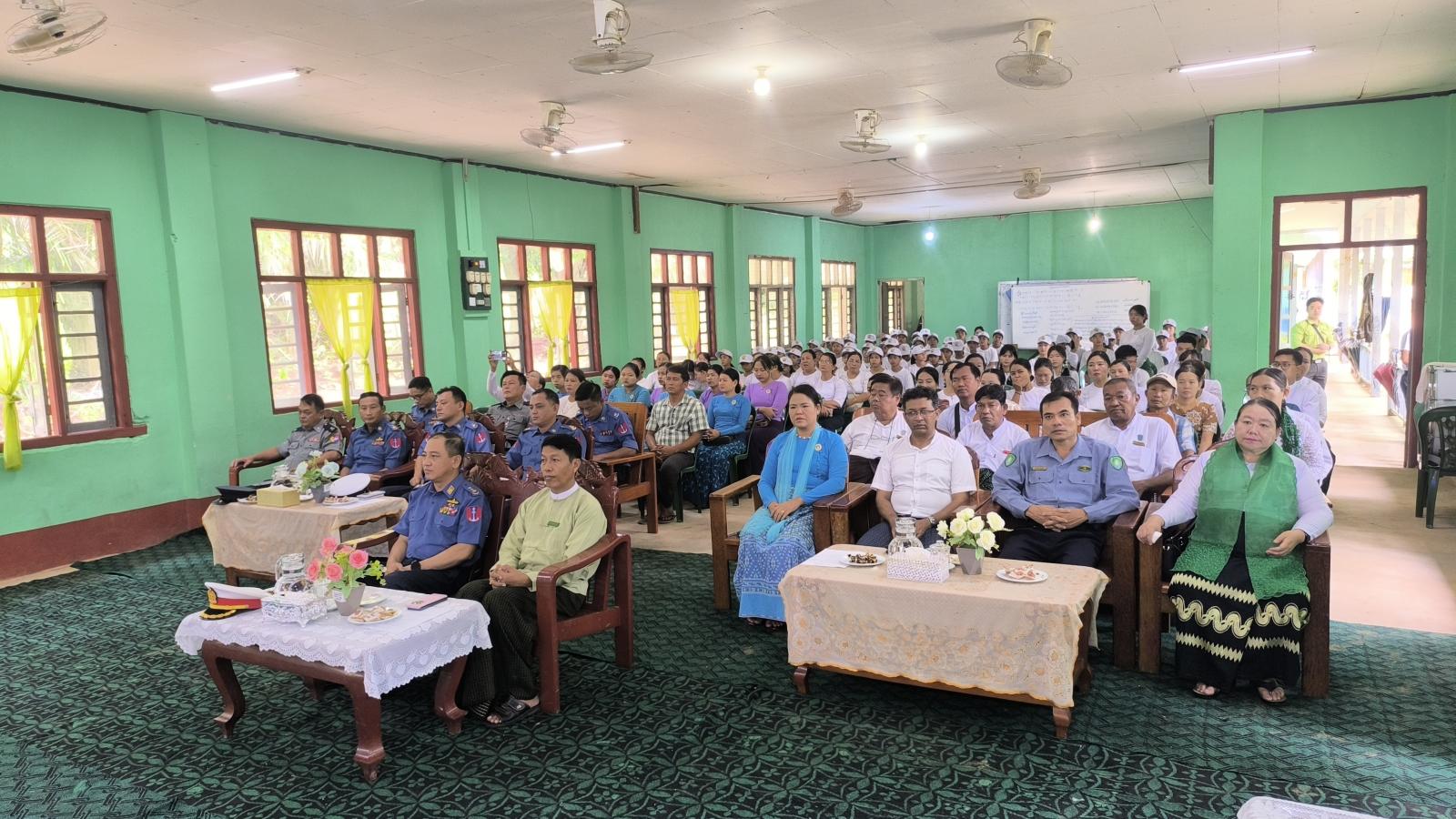 ရှေးဦးစွာ မြို့နယ်စီမံအုပ်ချုပ်ရေးအဖွဲ့ဥက္ကဋ္ဌဦးအောင်စန်းဝင်းက အဖွင့်အမှာစကား ပြောကြားခဲ့ပြီး မြို့နယ်ပညာရေးမှူးဒေါ်နုနုလွင်က နွေရာသီဘင်ခရာသင် တန်းဆင်းပွဲနှင့် ပတ်သက်၍ အမှာစကားပြောကြားခဲ့သည်။