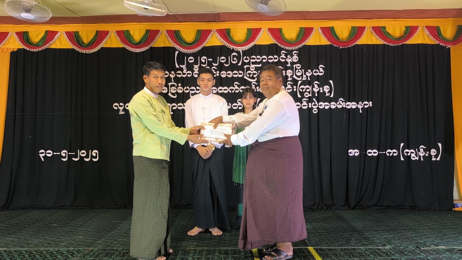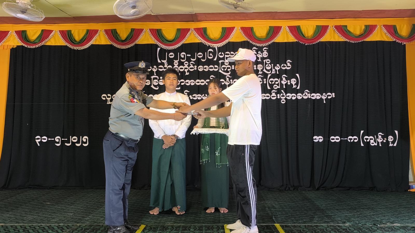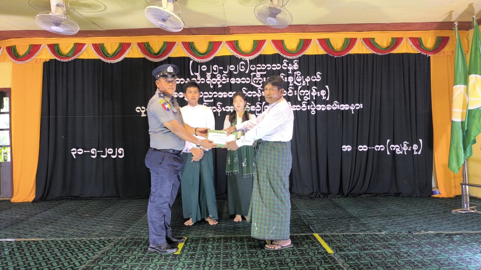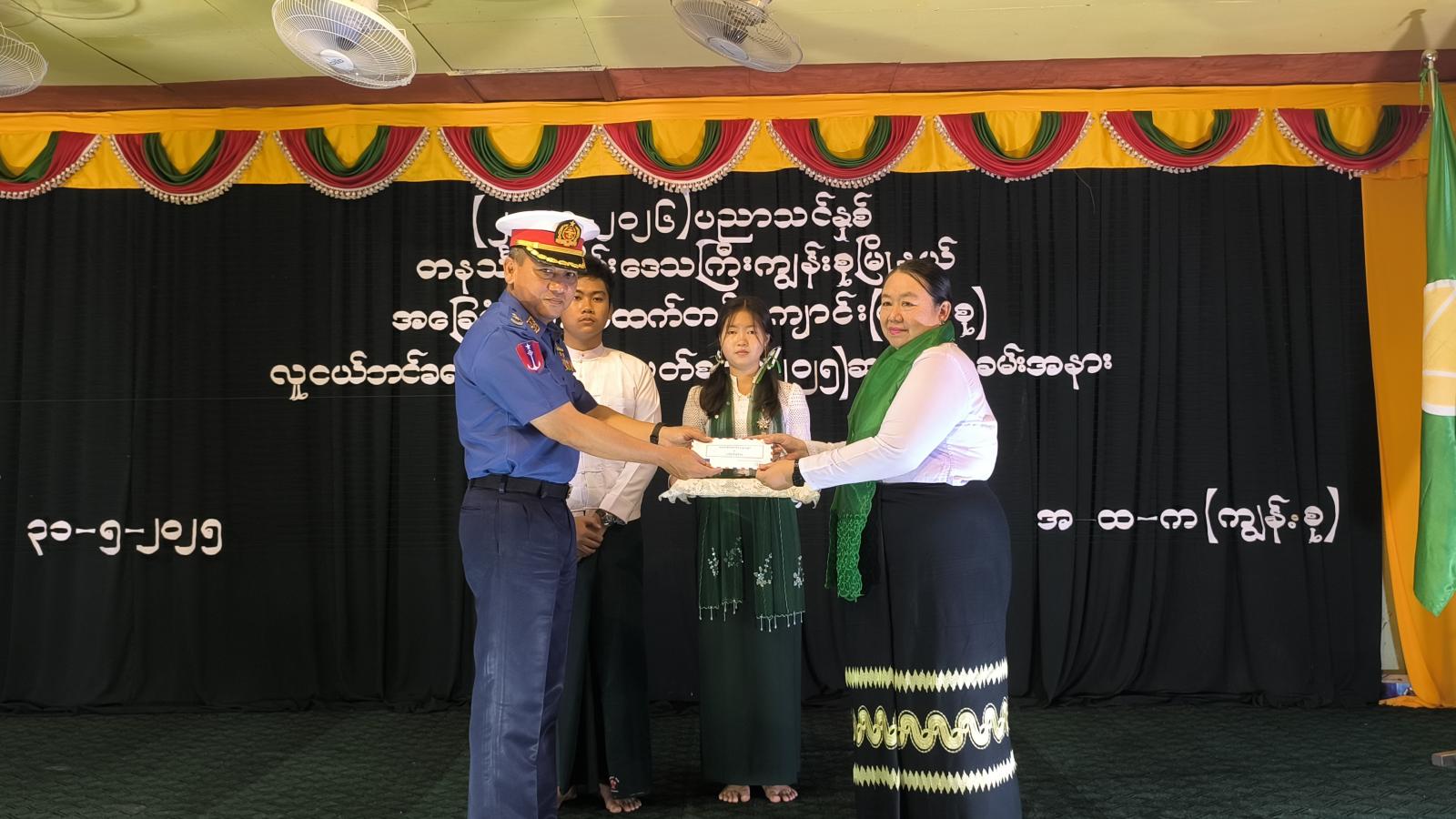 ဆက်လက်၍ လူငယ်ဘင်ခရာသင်တန်း နည်းပြအုပ်ချုပ်သူများအား ဂုဏ်ပြုချီးမြှင့်ငွေများနှင့် အမှတ်တရလက်ဆောင်များအားလည်းကောင်း၊ ဘင်ခရာသင်တန်းသား၊ သင်တန်းသူများအား သင်တန်းဆင်းလက်မှတ်များအားလည်းကောင်း တနင်္သာရီရေတပ်စခန်းဌာနချုပ်၊ ခေတ္တဌာနချုပ်မှူး ဗိုလ်မှူးကြီး ကျော်ထက်၊ မြို့နယ်စီမံအုပ်ချုပ်ရေးအဖွဲ့ ဥက္ကဋ္ဌ ဦးအောင်စန်းဝင်းနှင့် တာဝန်ရှိသူများက အသီးသီးပေးအပ်ခဲ့သည်။