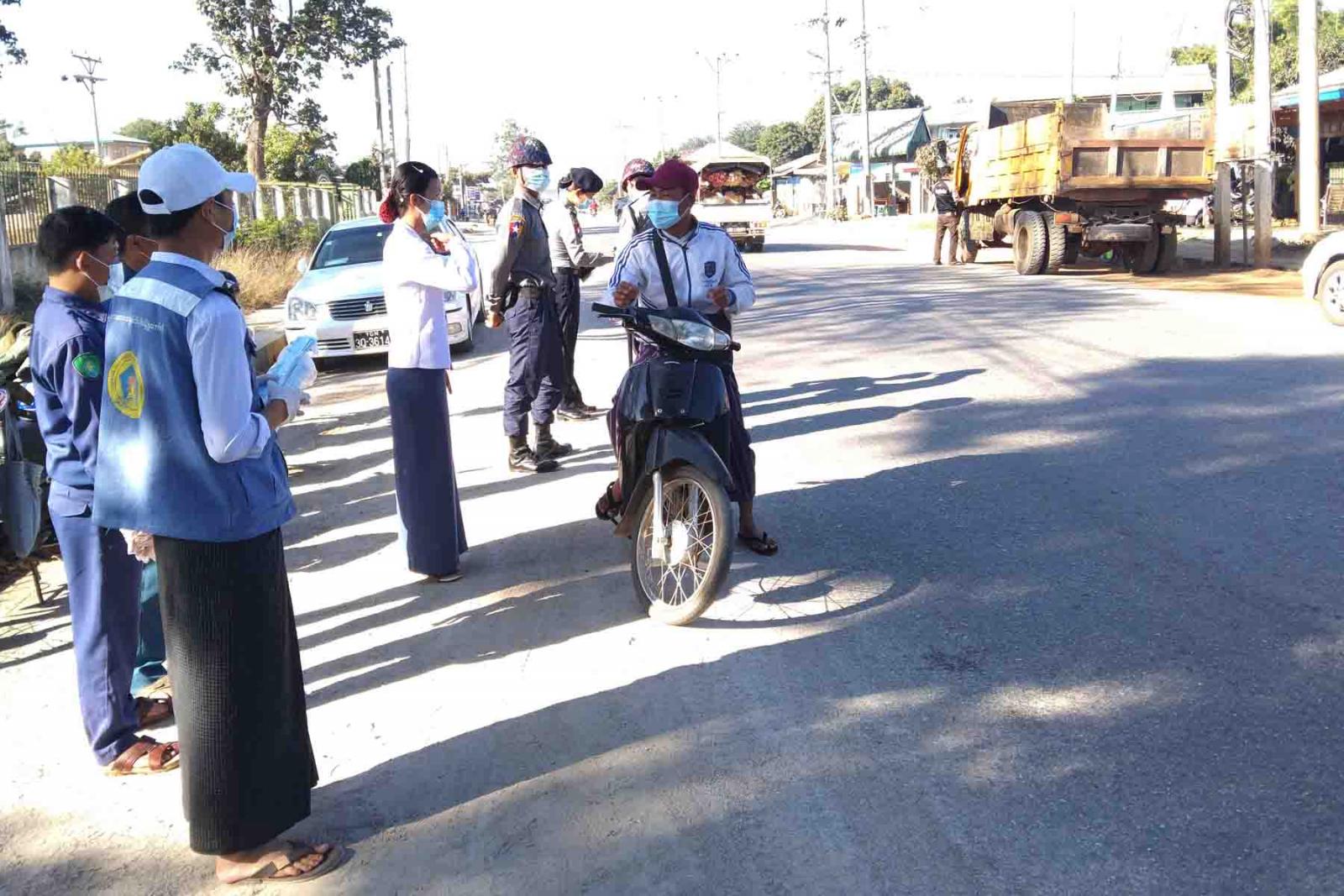 ထိုသို့ ဆောင်ရွက်ရာတွင် မြို့နယ်အထွေထွေအုပ်ချုပ်ရေးဦးစီးဌာန၊ မြို့နယ်အဆင့်ဌာနဆိုင်ရာ တာဝန်ရှိသူများ၊ မြို့နယ်ရဲတပ်ဖွဲ့၊ မြို့နယ်မီးသတ်တပ်ဖွဲ့ နှင့် စေတနာ့ ဝန်ထမ်းများ ပါဝင်သည့် ပူးပေါင်းအဖွဲ့က ပြင်ပသို့ ထွက်ခွာ သွားလာနေကြသော ပြည်သူများအား ကျန်းမာရေး ညွှန်ကြားချက်များ နှင့် အညီ လိုက်နာဆောင်ရွက်ခြင်း ရှိ/မရှိ စစ်ဆေးဆောင်ရွက်ခဲ့ပြီး Mask တပ်ဆင်ခြင်းမရှိဘဲ သွားလာနေသည့် လမ်းသွား ၊ လမ်းလာ ပြည်သူများအား ကိုဗစ်-၁၉ ရောဂါ ကူးစက်ပြန့်ပွားမှု မဖြစ်ပေါ်စေရေးအတွက် အိမ်အပြင်ထွက်ပါက ကျန်းမာရေးညွှန်ကြားချက်များ နှင့်အညီ မဖြစ်မနေ Mask တပ်ဆင် သွားလာကြရန် အသိပေးပြောကြားကာ Mask တစ်ခုကို ငွေကျပ်(၂၀၀/-)ဖြင့် ချက်ချင်းဝယ်ယူ တပ်ဆင်စေခဲ့ကြောင်း သိရသည်။