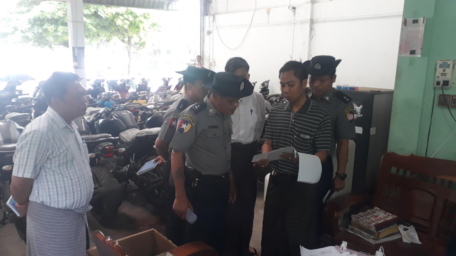 စစ်ကိုင်းတိုင်းဒေသကြီးရဲတပ်ဖွဲ့မှူး၏ အနီးကပ်လမ်းညွှန်မှုဖြင့် မုံရွာခရိုင် လိုင်စင်မဲ့မော်တော်ယာဉ်/ မော်တော်ဆိုင်ကယ်များ စိစစ်ဖော်ထုတ်အရေးယူရေးအဖွဲ့ ခေါင်းဆောင် ခရိုင်ရဲတပ်ဖွဲ့မှူး ယာယီဒုတိယရဲမှူးကြီးတင်အောင် ဦးဆောင်သော အဖွဲ့သည် ယနေ့နံနက် (၉)နာရီက စတင်ပြီး မုံရွာမြို့နယ် ကျောက္ကာလမ်းပေါ်ရှိ ဆိုင်ကယ်ရောင်းဝယ်ရေး ဆိုင်များသို့ ရောက်ရှိပြီး လုပ်ငန်းရှင်များနှင့်တွေ့ဆုံကာ စည်ပင်လုပ်ငန်းလိုင်စင်၊ ရောင်းချခွင့်လိုင်စင်၊ အခွန်ဆောင်ထားရှိမှု စသည့် သတ်မှတ်လုပ်ငန်းလိုင်စင်များ ရှိ/မရှိတို့ကို ကြည့်ရှု စစ်ဆေးခဲ့ပြီးနောက် တရားမဝင်မော်တော်ဆိုင်ကယ်များ လုံးဝရောင်းချခြင်းများ မပြုလုပ်ကြရန်နှင့် မုံရွာမြို့နယ်အတွင်းရှိ လိုင်စင်မဲ့မော်တော်ယာဉ်/မော်တော်ဆိုင်ကယ်များ (လုံးဝ)မရှိစေရေးတို့ကို ဖော်ထုတ်ဖမ်းဆီးဆောင်ရွက်ခဲ့သည်။