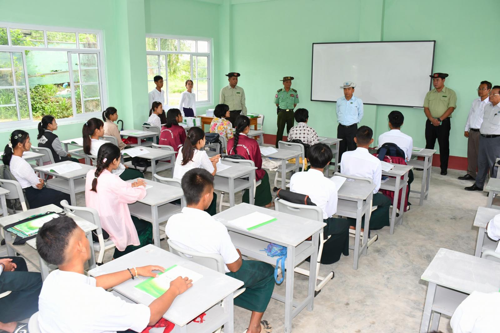 ထို့နောက် ကျောင်းအတွင်း ယာယီစာသင်ဆောင်ဆောက်လုပ်နေမှုကို ကြည့်ရှုစစ်ဆေးပြီး လုပ်ငန်းများ အမြန်ပြီးစီးအောင် ဆောင်ရွက်ရေး၊ ကျောင်းပတ်ဝန်းကျင် ရေစီးရေလာကောင်းမွန်စေရေးနှင့် ရေမြောင်းအတွင်း အမှိုက်များ ပိတ်ဆို့မှု မရှိစေရေး တာဝန်ရှိသူများအား မှာကြားခဲ့ကြောင်း သိရသည်။