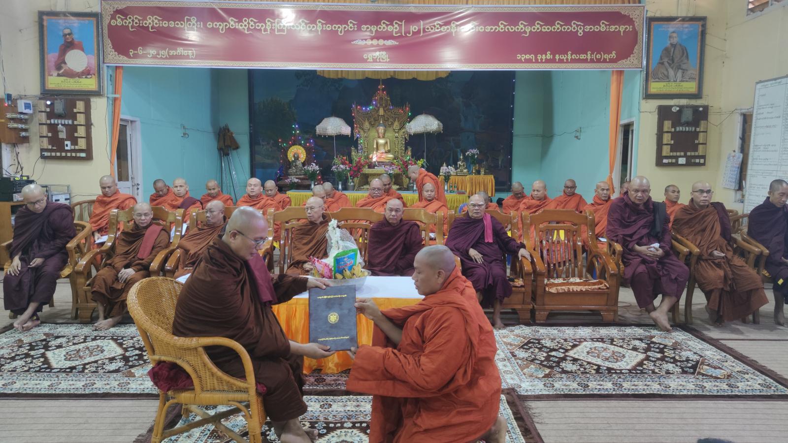 ထို့နောက် ထူးချွန်အောင်မြင်ခဲ့သော သင်တန်းသား သံဃာတော်များအား ဂုဏ်ပြုဝတ္တုငွေများကို သက်ဆိုင်ရာတာဝန်ရှိသူအသီးသီးက ဆက်ကပ်လှူဒါန်းခဲ့ကြသည်။ ဆက်လက်ပြီး ကျောင်းထိုင်ဘုန်းကြီးသင်တန်းကျောင်း နာယကအဖွဲ့ဝင် ဆရာတော် ဘဒ္ဒန္တအဂ္ဂဓမ္မမှ လှူဒါန်းမှုအစုစုတို့အား အနုမောဒနာတရာ ဟောကြားချီးမြှင့်၍ ရေစက်သွန်းချ အမျှပေးဝေခဲ့ပြီးနောက် ဗုဒ္ဓသာသနံ စိရံတိဌတု(၃)ကြိမ်ရွတ်ဆိုဆုတောင်း၍ အခမ်းအနားပြီးမြောက်အောင်မြင်ခဲ့ကြောင်း သိရသည်။