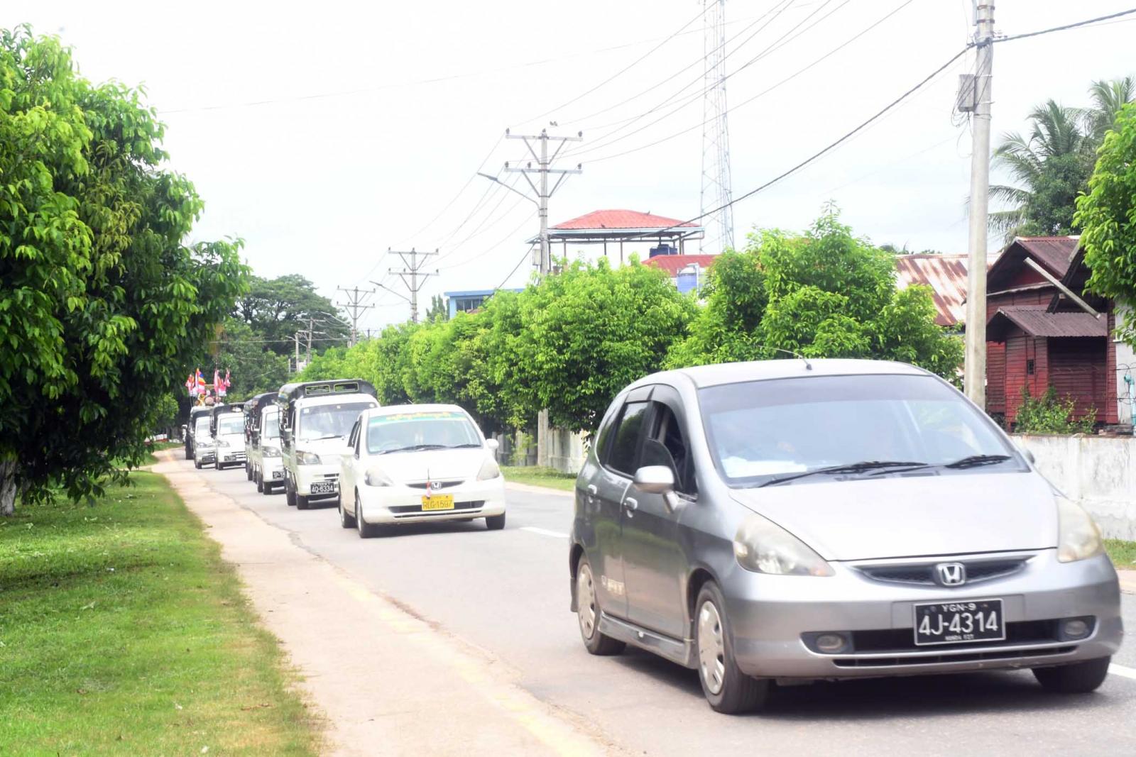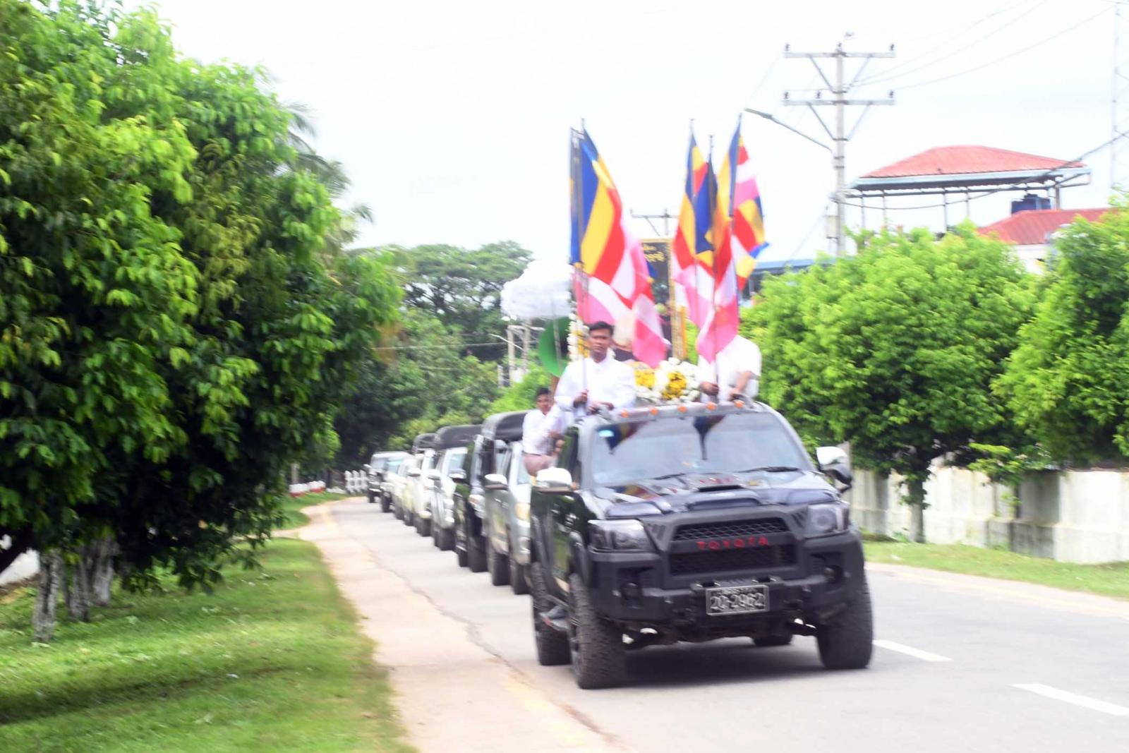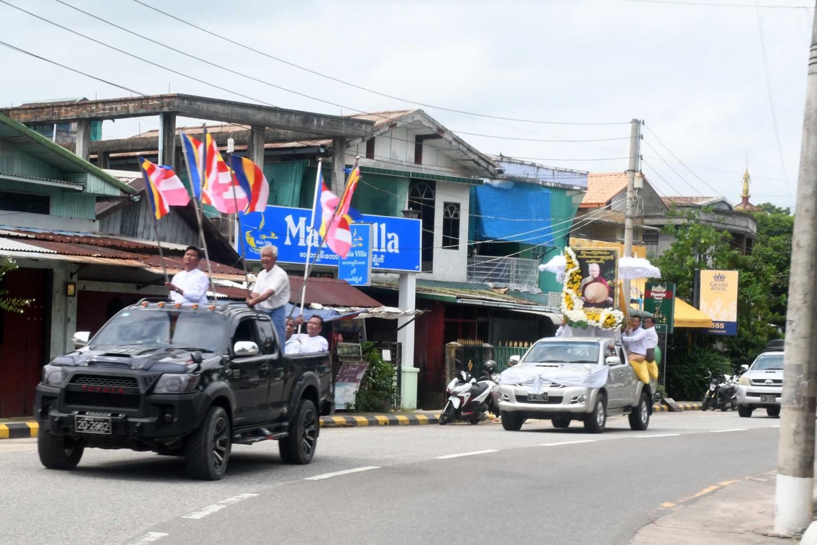 ထို့နောက်တိုင်းဒေသကြီးဝန်ကြီးချုပ်ဦးမြတ်ကိုက ဆရာတော်ကြီး၏ အရိုးပြာအိုးအား ယာဉ်ပေါ်သို့ပင့်ဆောင်ခဲ့ပြီး ဆရာတော်/သံဃာတော်များ ဦးဆောင်၍ မော်တော်ယာဉ်များဖြင့် ညောင်ရမ်းတောင်ရပ်၊ ဘုန်းကြီးပျံကုန်းမှတဆင့် ရင်ပြင်ပတ်လမ်းအတိုင်း- မီးသတ်လမ်းဆုံ-ဥတ္တံတားကြီးလမ်းဆုံ၊ မြို့တွင်းလမ်းအတိုင်း၊ အာဇာနည်လမ်းအတိုင်း ကမ်းနားလမ်းအတိုင်း ဒေါင်းငူ/တံငါရပ်ကွက်၊ ဆိပ်ကမ်းသာဘော တံတားအထိ လှည့်လည်ပူဇော်ခံသည်။