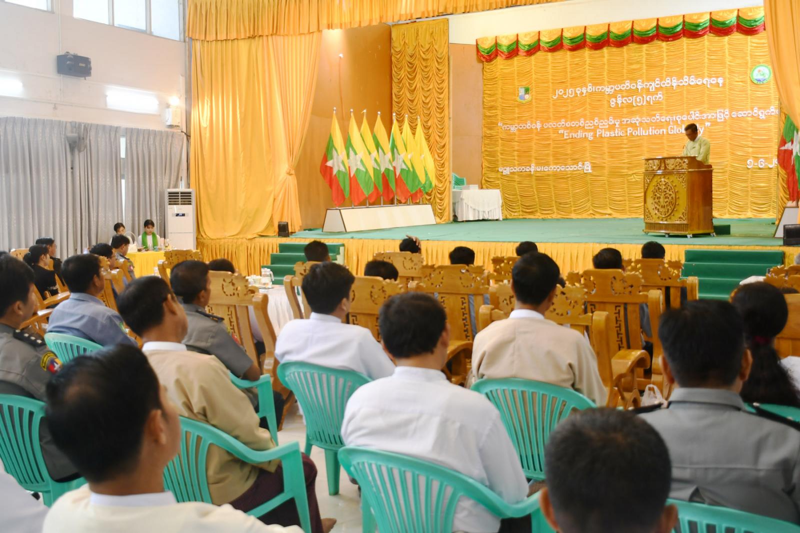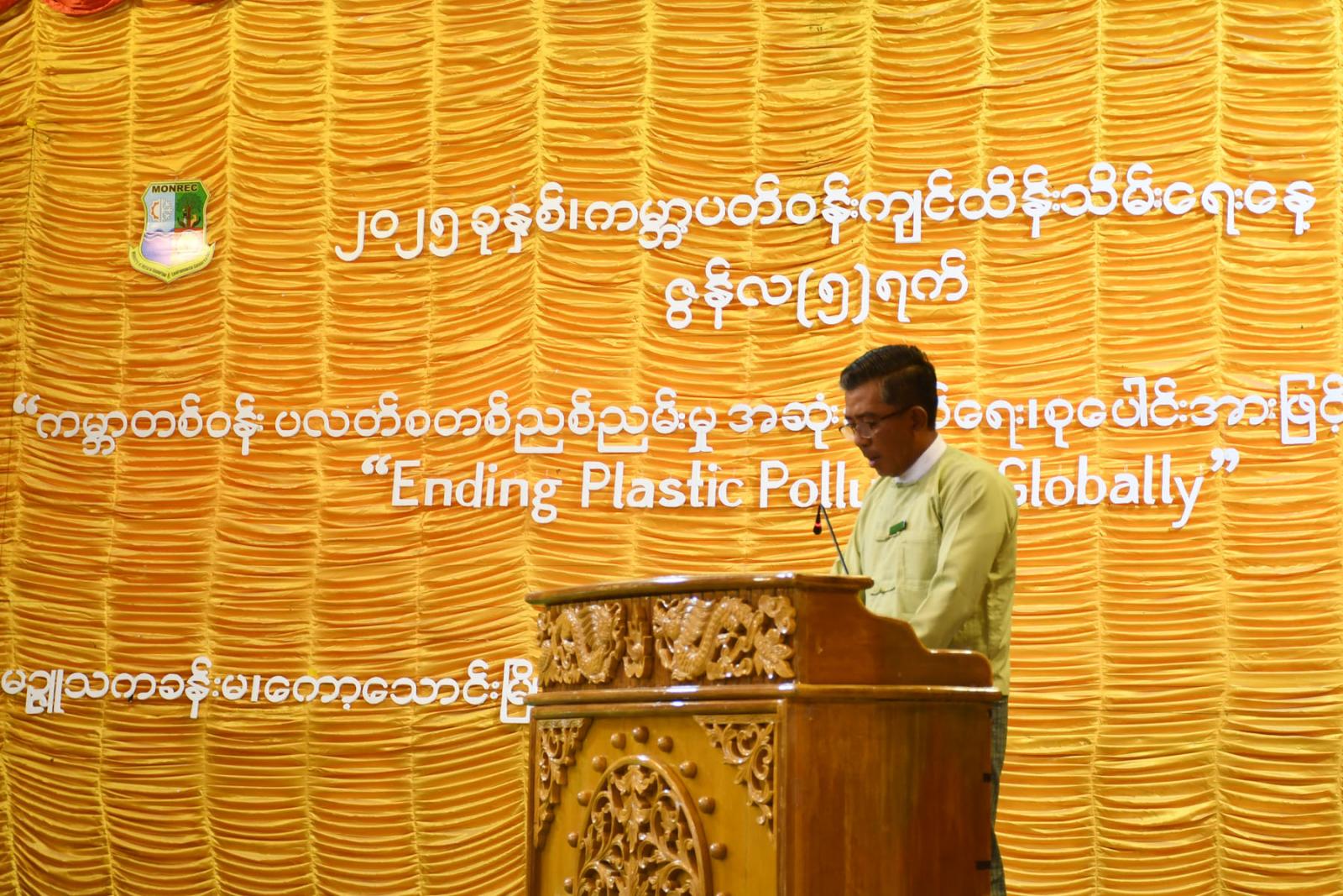 အဆိုပါ အခမ်းအနားတွင် ခရိုင်စီမံအုပ်ချုပ်ရေးအဖွဲ့ဥက္ကဋ္ဌဦးစိုးအောင်မှ ကမ္ဘာ့ပတ်ဝန်းကျင် ထိန်းသိမ်းရေးနေ့ ဖြစ်ပေါ်လာပုံ၊ ကမ္ဘာ့ပတ်ဝန်းကျင်ထိန်းသိမ်းရေး ဆောင်ရွက်ချက်များ ပြောကြား၍ ၂၀၂၅ ခုနှစ် ကမ္ဘာ့ပတ်ဝန်းကျင် ထိန်းသိမ်းရေးနေ့ဆောင်ပုဒ်မှာကမ္ဘာတစ်ဝန်း ပလတ်စတစ်ညစ်ညမ်းမှုအဆုံးသတ်ရေး စုပေါင်းအားဖြင့် ဆောင်ရွက်ပေး Ending Plastic Pollution Globally ဖြစ်ပြီး ဂေဟစနစ်နှင့် လူသားတို့၏ကျန်းမာရေးကို ထိခိုက်စေသည့် ပလတ်စတစ်စွန့်ပစ်ပစ္စည်းများနှင့် ပတ်သက်သည့်အသိပညာများ မြှင့်တင်ရန်၊ ပလတ်စတစ်ထုတ်လုပ်မှုနှင့် သုံးစွဲမှုလျှော့ချရန်၊ ပြန်လည်အသုံးပြုနိုင်သော ပစ္စည်းများကို ပြောင်းလဲအသုံးပြုရန်၊ ပလတ်စတစ်စွန့်ပစ်ပစ္စည်း စီမံခန့်ခွဲမှုမြှင့်တင်ရန်နှင့် သဘာဝပတ်ဝန်းကျင် ထိန်းသိမ်းရေးအတွက် ကမ္ဘာတစ်ဝန်း ပလတ်စတစ်ညစ်ညမ်းမှုကို အဆုံးသတ်စေမည့် သဘောတူညီချက်တစ်ရပ် ထွက်ပေါ်လာစေရန် ရည်ရွယ်ကြောင်း၊ ကမ္ဘာနှင့်တစ်ဝှမ်း ကြုံတွေ့နေရသည့် ပလတ်စတစ်ညစ်ညမ်းမှုပြဿနာကို ဖြေရှင်းရန်တစ်ဦး တစ်ယောက်ချင်းစီ၏ လုပ်ဆောင်မှုများလည်း အရေးကြီးပါကြောင်း၊ ပလတ်စတစ်ညစ်ညမ်းမှု ပြဿနာကို အားလုံးပူးပေါင်းလက်တွဲ ဖြေရှင်းဆောင်ရွက်ရမည် ဖြစ်ကြောင်း၊ ကော့သောင်းခရိုင်အနေဖြင့်လည်း ပလတ်စတစ် အမှိုက်သန့်ရှင်းရေး စုပေါင်းအမှိုက်ကောက်လှုပ်ရှားမှုများ ဆောင်ရွက်လျက်ရှိပါကြောင်း၊ အနာဂတ်မျိုးဆက်များအတွက် သန့်ရှင်းကျန်းမာသောကမ္ဘာကိုလက်ဆင့်ကမ်းနိုင်ရန် ပလတ်စတစ်သုံးစွဲမှုကို လျှော့ချ၍ ပတ်ဝန်းကျင်ကို တန်ဖိုးထားသောအလေ့အကျင့်များ မွေးမြူကြပါရန် တိုက်တွန်းပြောကြားခဲ့သည်။