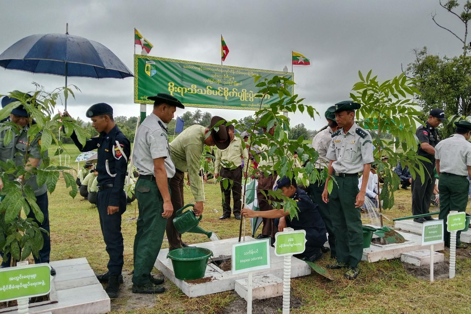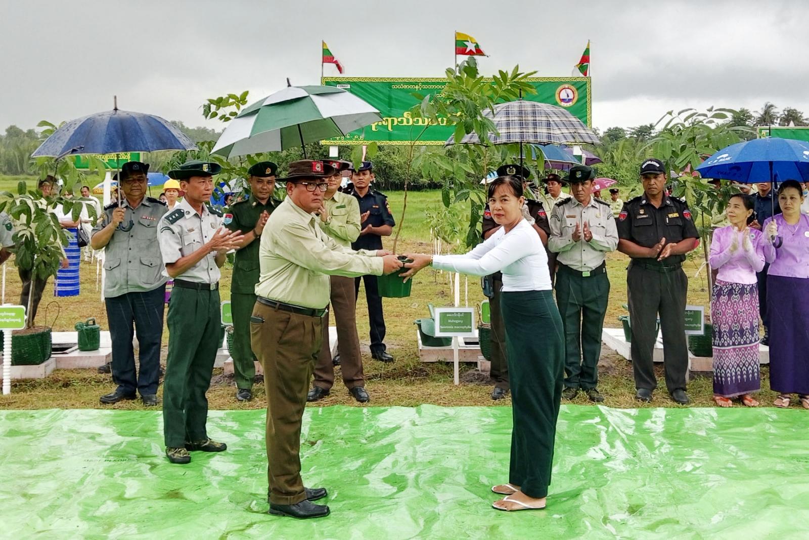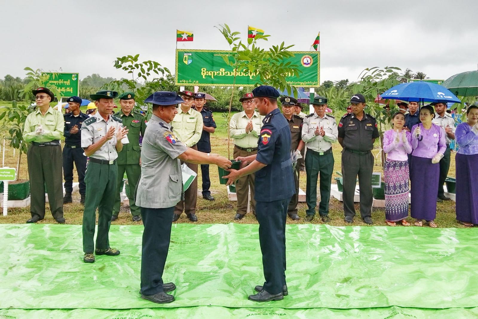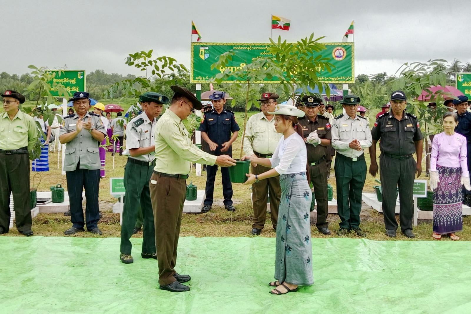 သစ်ပင်စိုက်ပျိုးပွဲတော်တွင် ဘုတ်ပြင်းခရိုင်စီမံအုပ်ချုပ်ရေးအဖွဲ့ဥက္ကဋ္ဌ ဦးမင်းကို၊ ဘုတ်ပြင်းခရိုင် ရဲတပ်ဖွဲ့မှူး ဒုတိယရဲမှူးကြီး ဝင်းနိုင်နှင့် ဘုတ်ပြင်းမြို့နယ် စီမံအုပ်ချုပ်ရေးအဖွဲ့ဥက္ကဋ္ဌ ဦးညီညီတို့က တက်ရောက်လာကြသည့် ခရိုင်၊ မြို့နယ်အဆင့် ဌာနဆိုင်ရာများ၊ လူမှုရေးအသင်းအဖွဲ့များနှင့် အ.ထ.က-ဘုတ်ပြင်းကျောင်းအုပ်ကြီးတို့အား စိုက်ပျိုးမည့် ပျိုးပင်များအား အသီးသီးပေးအပ်ခဲ့သည်။