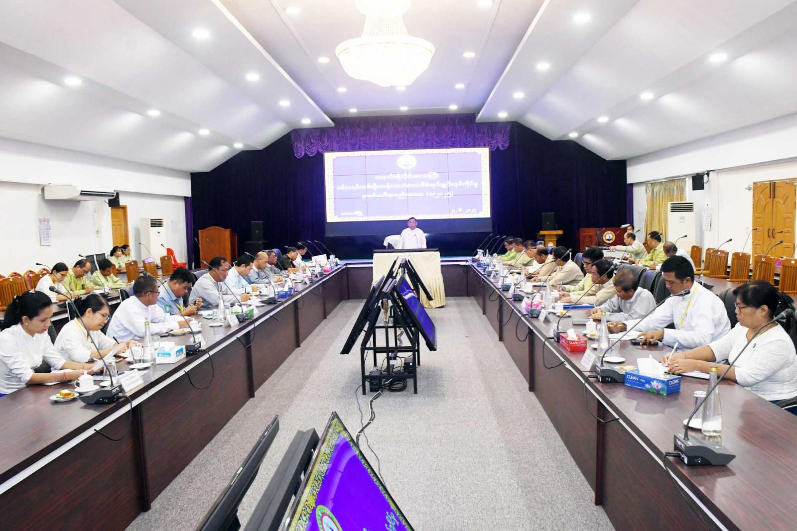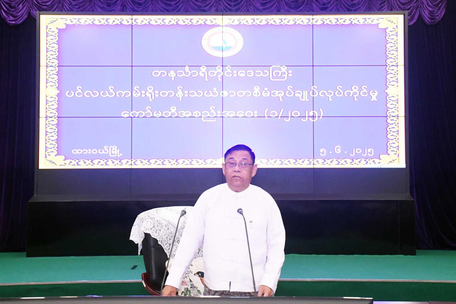 အစည်းအဝေးတွင် တိုင်းဒေသကြီးအဆင့်ပင်လယ်ကမ်းရိုးတန်း သယံဇာတ စီမံအုပ်ချုပ်လုပ်ကိုင်မှုကော်မတီဥက္ကဋ္ဌ၊ တိုင်းဒေသကြီး ဝန်ကြီးချုပ်ဦးမြတ်ကိုက ယနေ့အစည်းအဝေး၏ အဓိကရည်ရွယ်ချက်တွင် ယခင်ကျင်းပပြီးစီးခဲ့သည့် နိုင်ငံအဆင့်ပင်လယ် ကမ်းရိုးတန်းသယံဇာတ စီမံအုပ်ချုပ်လုပ်ကိုင်မှု ဗဟိုကော်မတီ နှင့် လုပ်ငန်းကော်မတီ အစည်း အဝေးများ၏ ဆုံးဖြတ်ချက်များအပေါ်အကောင်အထည်ဖော်ဆောင် ရွက်ပြီးစီးမှု အခြေအနေများ၊ ဗဟိုကော်မတီ (သတ္တမအကြိမ်) အစည်းအဝေးနှင့်လုပ်ငန်းကော်မတီ (ဆဌမအကြိမ်) အစည်းအဝေးများ ကျင်းပပြုလုပ်မည်ဖြစ်၍ ကြိုတင်ပြင်ဆင်ဆောင်ရွက်ထားရှိရန်လိုအပ်ကြောင်း၊ တိုင်းဒေသကြီး ပင်လယ်ကမ်းရိုးတန်းသယံဇာတ စီမံအုပ်ချုပ် လုပ်ကိုင်မှုကော်မတီကို အဖွဲ့ဝင် (၂၅) ဦးဖြင့်ပြန်လည် ဖွဲ့စည်းခဲ့ပြီး လုပ်ငန်းများအကောင်အထည်ဖော်ဆောင်ရွက်လျက် ရှိကြောင်း၊ သက်ဆိုင်ရာအဖွဲ့ဝင်ဌာနများက အလေးထားဆောင်ရွက်နိုင်ခဲ့ကြသည့် ရလဒ်များအဖြစ် ငါးဖမ်း/ သယ်ရေယာဉ် များတွင် VMS, AIS စနစ်တပ်ဆင်၍ စိစစ်ကြပ်မတ်နိုင်ခြင်း၊ ငါးမဖမ်းဆီးရဧရိယာများ တိုးချဲ့သတ်မှတ်ဆောင်ရွက်နိုင်ခြင်း၊ အဏ္ဏဝါသိပ္ပံသုတေသနလုပ်ငန်းများဆောင်ရွက်နိုင်ခြင်း၊ ဒီရေတောပင်၊ လေကာတန်း/အရိပ်ရပင်၊ အုန်းပင်များ တိုးချဲ့စိုက်ပျိုးနိုင်ခြင်း၊ ဒီရေတောဧရိယာများ တိုးတက်လာခြင်း၊ ပင်လယ်ပြင်ဥပဒေ စိုးမိုးရေးမြှင့်တင်ဆောင်ရွက်နိုင်ခြင်း၊ စွန့်ပစ်ပစ္စည်း စီမံခန့်ခွဲမှု လုပ်ထုံးလုပ်နည်းအတည် ပြုနိုင်ခြင်းစသည့် ပင်လယ်ကမ်းရိုးတန်းသယံဇာတများ ရေရှည်တည်တံ့အောင် စီမံအုပ်ချုပ်ခြင်းလုပ်ငန်းများကို သက်ဆိုင်ရာဌာနအဖွဲ့အစည်းများက တိုးတက်မှုများရရှိအောင် အကောင်အထည်ဖော်ဆောင်ရွက်ခဲ့မှုများကို ကျေးဇူးတင်ရှိပါကြောင်း၊ တိုင်းဒေသကြီး၏ အပြာရောင်စီးပွား ရေး ဖော်ထုတ်နိုင်မည့်အလား အလာအနေဖြင့် ငါး၊ ပုစွန်၊ ဂဏန်း စသည့် ရေထွက်သယံဇာတများမွေးမြူနိုင်ခြင်း၊ ပုလဲမွေးမြူထုတ်ယူနိုင်ခြင်း၊ နိုင်ငံတကာအဆင့်မီ ဆိပ်ကမ်းများနှင့်အထူးစီးပွားရေးဇုန်များ ဖွံ့ဖြိုးနိုင်ခြေရှိခြင်း၊ သဘာဝအတိုင်းတည်ရှိနေသည့် ကမ်းခြေနှင့်ကျွန်းများရှိပြီး ခရီးသွားလုပ်ငန်းဖွံ့ဖြိုးနိုင်ခြင်း၊ ဒီရေတောနှင့် ပင်လယ်သမုဒ္ဒရာထိန်းသိမ်းထားသည့် ကာဗွန်သိုလှောင်မှုရှိခြင်း၊ကမ်းရိုးတန်းနေတိုင်းရင်း သားများနှင့် ဒေသခံပြည်သူများ၏ စုံလင်သည့် ရိုးရာယဉ်ကျေးမှုအမွေအနှစ်များ ထိန်းသိမ်းရေးလုပ်ငန်းများ ဆောင်ရွက်နိုင်ခြင်းစသည့် အခွင့်အလမ်းများကို ဖော်ထုတ်အသုံးပြုခြင်းဖြင့် ဒေသတွင်းဖွံ့ဖြိုးတိုးတက်ရေးနှင့်စီးပွားရေးကို အထောက်အကူပြုနိုင်မှာဖြစ်ကြောင်း၊ တစ်ဖက်တွင်