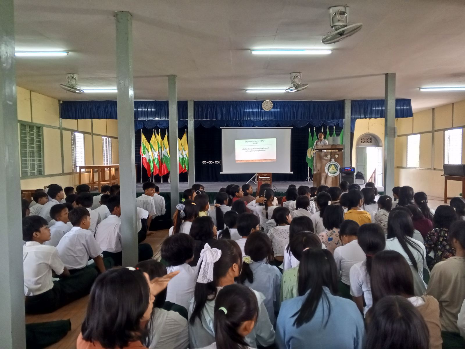ဟောပြောပွဲတွင် ကျောင်းအုပ်ဆရာမကြီးကအဖွင့် အမှာစကားပြောကြားပြီး ရွှေဘိုခရိုင်ပြန်ကြားရေးနှင့်ပြည်သူ့ဆက်ဆံရေးဦးစီးဌာနမှ ဦးစီးအရာရှိ ဒေါ်အေးမြင့်စန်းက မူးယစ်ဆေးဝါးသုံးစွဲခြင်းကြောင့် ကျန်းမာရေး၊ လူမှုရေး၊ စီးပွားရေး ထိခိုက် ဆုံးရှုံးမှုများ၊မူးယစ်ဆေးဝါးအန္တရာယ် ကြိုတင်ကာကွယ်ရေးအတွက် သိရှိလိုက်နာသင့်သည့် အချက်များကို ဟောပြောခဲ့သည်။