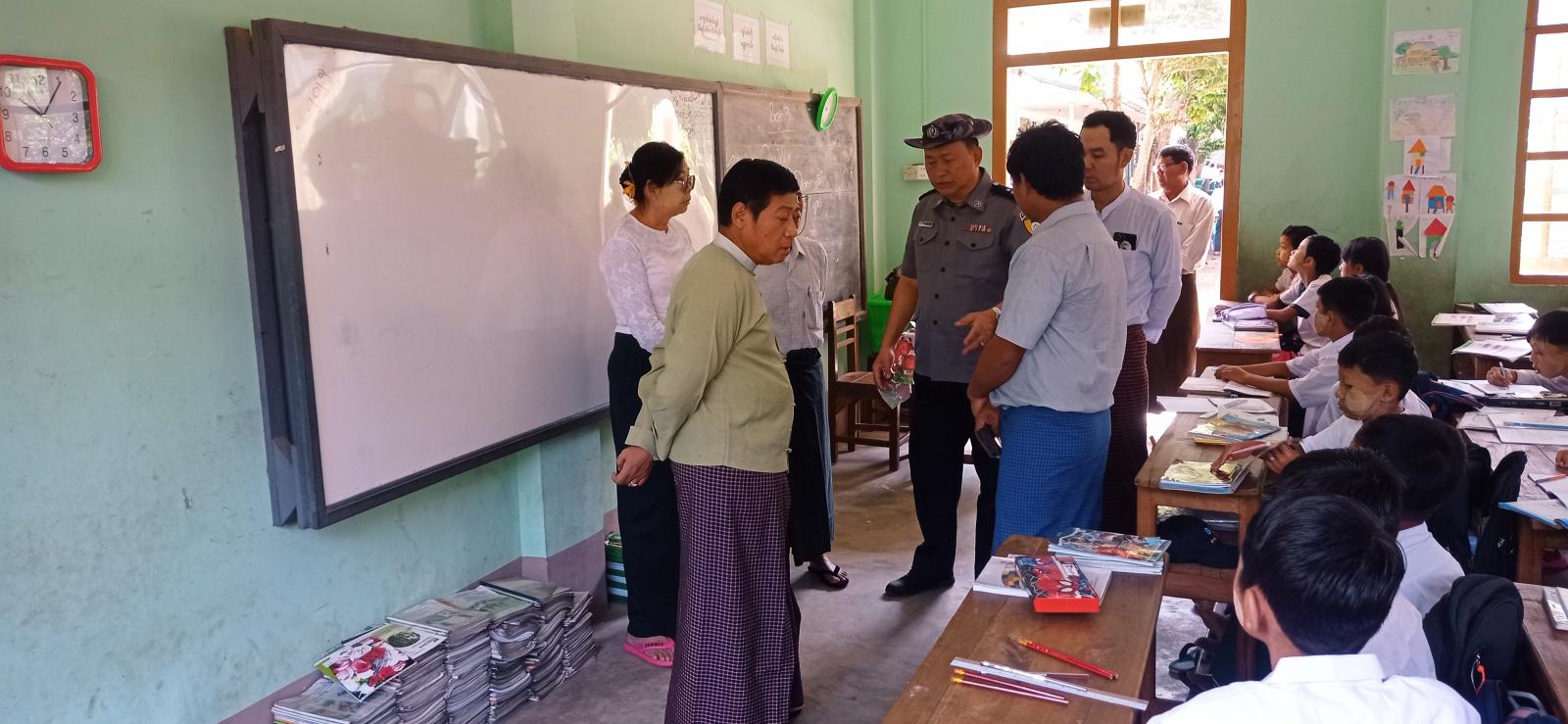 ကသာခရိုင်စီမံအုပ်ချုပ်ရေးအဖွဲ့ဥက္ကဋ္ဌနှင့် အဖွဲ့ဝင်များသည် စာသင်ကျောင်းဆောင်များတွင် ကျောင်းသား/ ကျောင်းသူများ အေးချမ်းစွာ ပညာသင်ကြားနေမှုတို့ကို လိုက်လံကြည့်ရှုအားပေးခဲ့ကြပြီး ကျောင်းဝန်းအတွင်း သန့်ရှင်းသာယာလှပရေးနှင့် ကျောင်းဥပဓိရုပ်ခန့်ထည်ရေး ဆောင်ရွက်ထားရှိမှုများအား ကြည့်ရှုစစ်ဆေးပြီး လိုအပ်သည်များကို ခရိုင်စီမံအုပ်ချုပ်ရေးအဖွဲ့က ပေါင်းစပ်ဖြည့်ဆည်းဆောင်ရွက်ပေးသွားမည် ဖြစ်ကြောင်း သိရသည်။