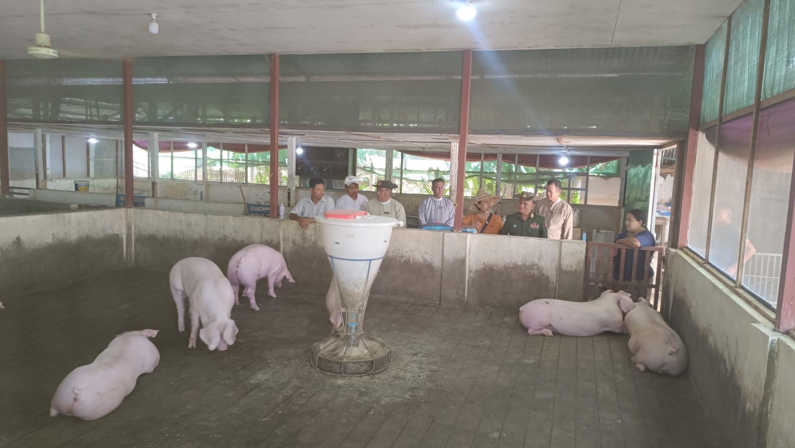 ဆက်လက်၍ နေပြည်တော်ကောင်စီဝင်ဗိုလ်မှူးကြီးရဲမိုးသည် ဦးသူရမောင်၏ အသားတိုးဝက်ခြံသို့ ရောက်ရှိရာ တာဝန်ရှိသူများက အသားတိုးဝက်မွေးမြူထားရှိမှုအခြေအနေများအား ရှင်းလင်းတင်ပြကြရာ တင်ပြချက်များအပေါ် နေပြည်တော်ကောင်စီဗိုလ်မှူးကြီးရဲမိုးက ဒေသဝမ်းစာဖူလုံရေးအပြင် ဈေးကွက်လိုအပ်ချက်ရှိနေသည့် အသားကဏ္ဍတိုးတက်ထုတ်လုပ်နိုင်ရေးအတွက် စီးပွားဖြစ်မွေးမြူရေးလုပ်ငန်းများ ပိုမိုဖွံ့ဖြိုးလာရန်လိုအပ်ကြောင်း၊ ဝက်မျိုးကောင်းမျိုးသန့်များ တိုးတက်ထုတ်လုပ်နိုင်ရေး၊ ထွက်ရှိလာသော ဝက်သားပေါက်ငယ်များကို ဒေသတွင်းဖြန့်ဖြူးနိုင်ရေးတို့ ဆောင်ရွက်သွားစေလိုကြောင်း မှာကြားခဲ့သည်။