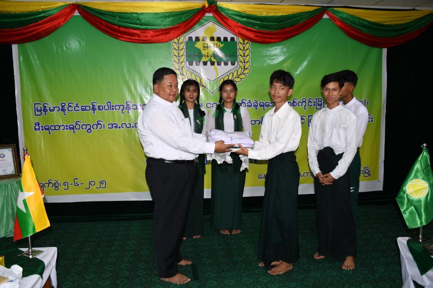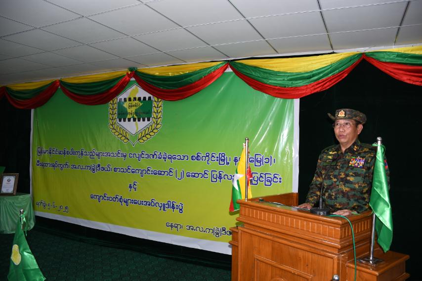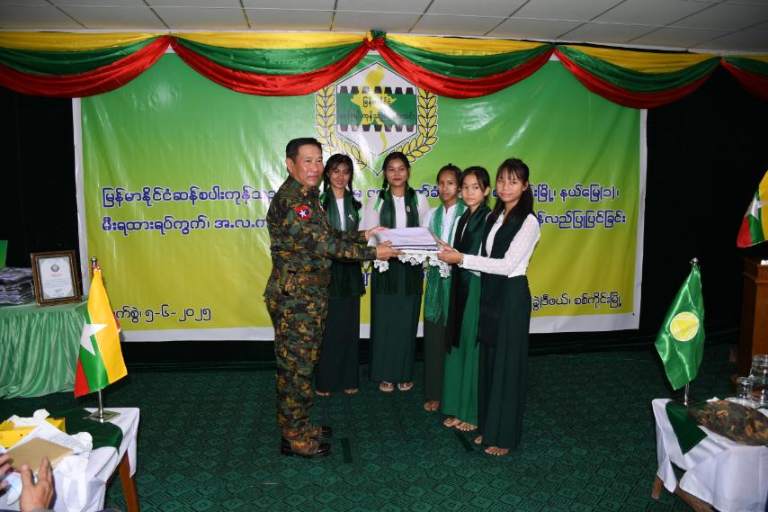ထို့နောက် ကာကွယ်ရေးဦးစီးချုပ်ရုံး(ကြည်း)မှ ဒုတိယဗိုလ်ချုပ်ကြီးသက်ပုံ၊ မြန်မာနိုင်ငံဆန်စပါး ကုန်သည်များအသင်းဥက္ကဋ္ဌ ဦးအောင်မြင့်နှင့် တာဝန်ရှိသူများက စာသင်ကျောင်းဆောင် (၂)ဆောင် ပြန်လည်ပြုပြင်ခြင်းဆိုင်ရာမှတ်တမ်းများနှင့် ကျောင်းဝတ်စုံ (၃၅၀၀) စုံအား ကျောင်းအုပ်ဆရာမကြီး နှင့် ကျောင်းသား၊ ကျောင်းသူများထံသို့ ပေးအပ်လှူဒါန်းခဲ့ကြသည်။