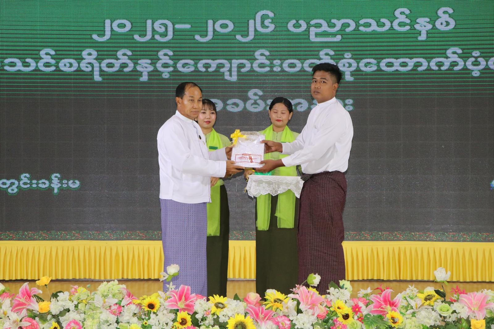 ယင်းနောက် တိုင်းဒေသကြီးဝန်ကြီးချုပ်က တက္ကသိုလ်တက်ရောက်နေသည့် ကျောင်းသား ၁ ဦးနှင့် အခြေခံပညာအထက်တန်းတက်ရောက်နေသော ကျောင်းသား ၁ ဦးတို့ထံ ပညာသင်စရိတ်နှင့် ကျောင်းဝတ်စုံများအား လည်းကောင်း၊ တိုင်းဒေသကြီးဝန်ကြီးချုပ်၏ဇနီးမှ တက္ကသိုလ်တက်ရောက်နေသော ကျောင်းသူ ၁ ဦးနှင့် အခြေခံပညာအထက်တန်း တက်ရောက်နေသော ကျောင်းသူ ၁ ဦးတို့ထံ ပညာသင်စရိတ်နှင့် ကျောင်းဝတ်စုံများအားလည်းကောင်း ပေးအပ်ချီးမြှင့်ကြသည်။