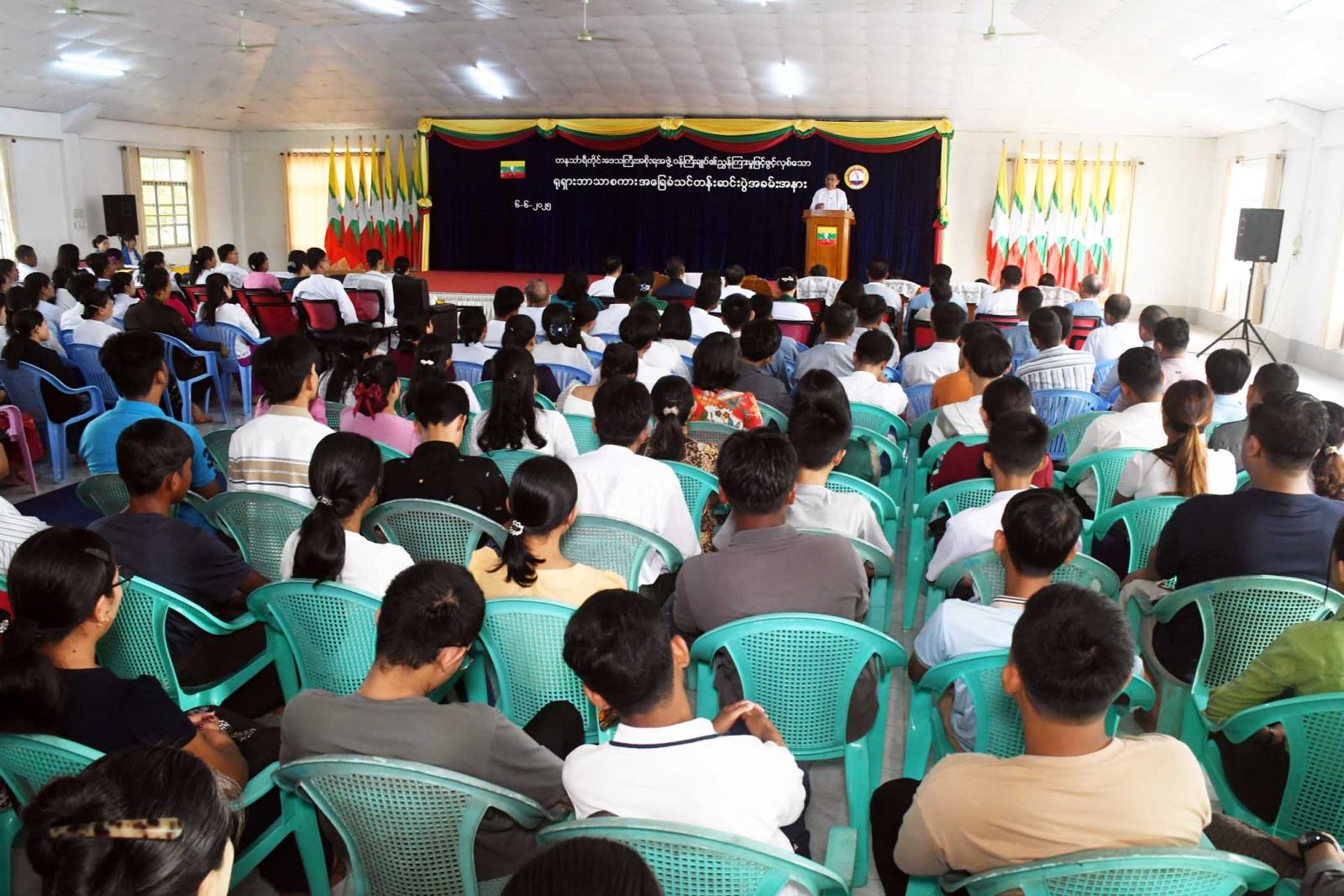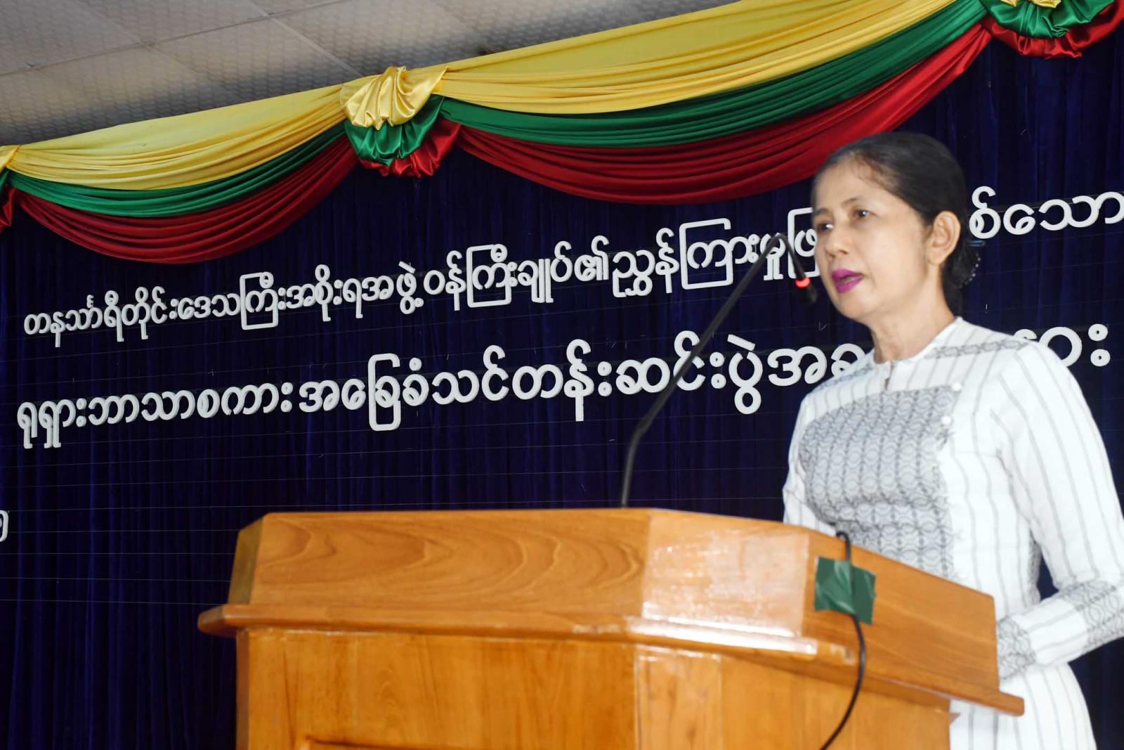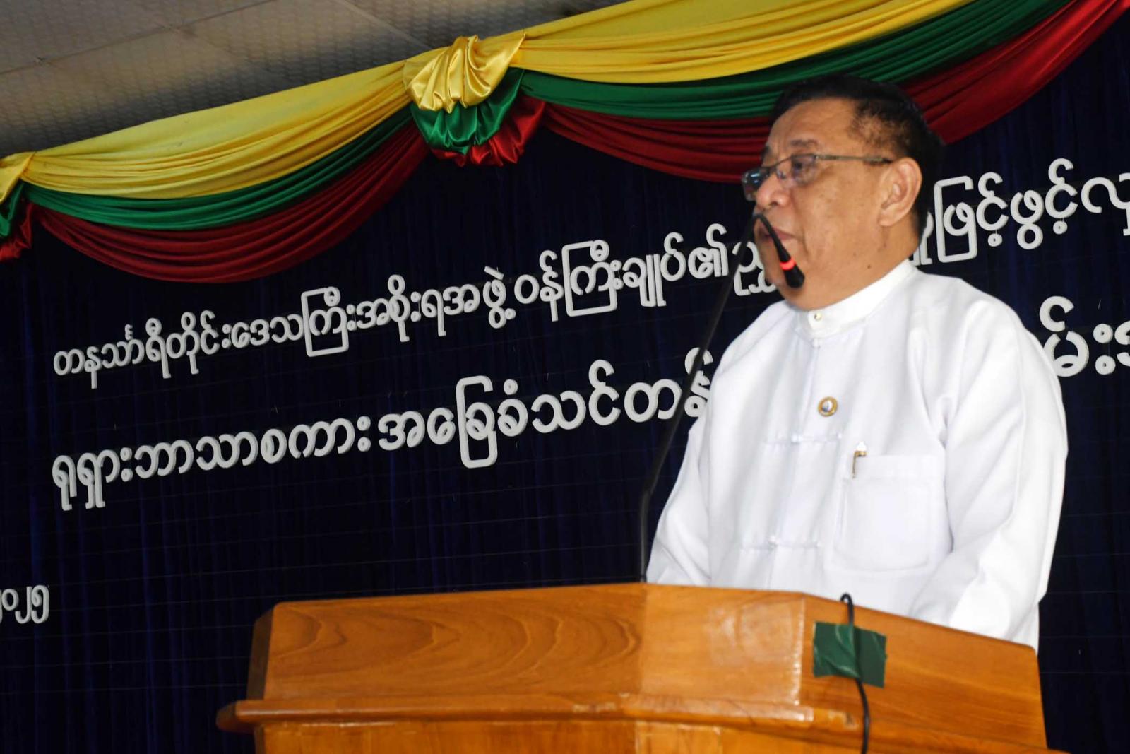 အခမ်းအနားတွင် တိုင်းဒေသကြီးဝန်ကြီးချုပ်ဦးမြတ်ကိုက ရုရှားဘာသာစကားအခြေခံသင်တန်းတွင် သင်တန်းသား ၂၀၀ ကျော် စိတ်ပါဝင်စားစွာ တက်ရောက်သောကြောင့် ဒေသ၏အကျိုးအတွက် ကောင်းမွန်သည့်ရလဒ်တစ်ခု၊ ကောင်းမွန်သည့် အနေအထားဖြစ်ပြီး ဒေသဖွံ့ဖြိုးတိုးတက်ရေးအတွက်ကို အခြေခံကျသော လုပ်ငန်းတစ်ခု အောင်မြင်သည်ဟု ယုံကြည်ကြောင်း၊ ရုရှားဘာသာစကားကျွမ်းကျင်တက်မြောက်ထားရန် လိုအပ်ကြောင်း၊ ဘာသာစကား မတတ်မြောက်သည့်နေရာဒေသသို့ ရောက်ရှိပါက စကားမပြောတက်သောသူ၊ နားမကြားသောသူနှင့်တူကြောင်း၊ မည်သည့်နေရာဒေသ သို့ရောက်ရှိသည်ဖြစ်စေ ဘာသာစကားအား သင်ယူထားရှိရန်လိုအပ်ကြောင်း၊ မိမိဘာသာစကားနှင့်မတူညီသောနေရာ ဒေသတွင်ကြာမြင့်စွာ နေထိုင်လာပါက ဘာသာစကားတတ်မြောက်လာကြောင်း၊ ဘာသာစကားတတ်မြောက်ရန် အချိန်ကာလတစ်ခု စောင့်ဆိုင်းရပြီး ကြိုးစားအားထုတ်မှုလည်းလို အပ်လာကြောင်း၊ မကြာခင်ကာလအတွင်း စတင်ဆောင်ရွက်မည့် ထားဝယ်ရေနက်ဆိပ်ကမ်း အထူးစီးပွားရေးဇုန်လုပ်ငန်းတွင် ပြောဆိုဆက်ဆံကြသည့်အခါ၌ ယခုသင်ယူထားသောအခြေခံဖြစ်သည့် ရုရှားဘာသာစကားနှင့် နူတ်ဆက်စကားများ သိရှိနိုင်ကြောင်း၊ ဥပမာအားဖြင့် အထည်ချုပ်စက်ရုံတွင် လုပ်ကိုင်ပါက ဝေါဟာရများ၊ စကားရပ်များ၊ ပညာရပ်များ သင်ကြားရနိုင်ပြီး အလားတူပင် ဟိုတယ်နှင့်ခရီး သွားလုပ်ငန်းနှင့်ပတ်သက်၍ ပြောဆို ဆက်ဆံရမှုများရှိနိုင်ကြောင်း၊ ဘာသာစကားသည် တစ်ဦးနှင့်တစ်ဦးယုံကြည်မှု၊ ရင်းနှီးမှု၊ ချစ်ခင်မှု၊ ဆက်သွယ်မှုကောင်းမွန်စေကြောင်း၊ ဘာသာစကားမတက်မြောက်ပါကနားမကြားသောသူ၊ စကား မပြောနိုင်သောသူနှင့်အလားသဏ္ဍာန်တူပြီး မည်သည့်အရာမှ လွယ်ကူစွာမရကြောင်း၊ ဘာသာစကားပြောဆိုနိုင် အောင်လေ့ကျင့်ထားရန်၊ ကြိုးစားအားထုတ်မှုရှိရန်လိုအပ်ပြီး နောင်အသုံးချနိုင်အောင်ဆက်လက်ပြီး လေ့ကျင့်သွားကြရန်လိုအပ်ကြောင်း၊ တိုင်းဒေသကြီးအစိုးရအဖွဲ့အနေဖြင့် အဆင့်မြင့်ဘာသာရပ်များကို ကဏ္ဍအလိုက်ခွဲခြားပြီးသင်တန်း များဖွင့်လှစ်နိုင်အောင်ဆောင်ရွက်ပေးသွားမည်ဖြစ်ကြောင်း၊ မြိတ်မြို့တွင်လည်း ဘာသာစကားတစ်ခု ဖွင့်လှစ်ဆောင်ရွက်ပေးသွားမည်ဖြစ်ကြောင်း ပြောကြားသည်။