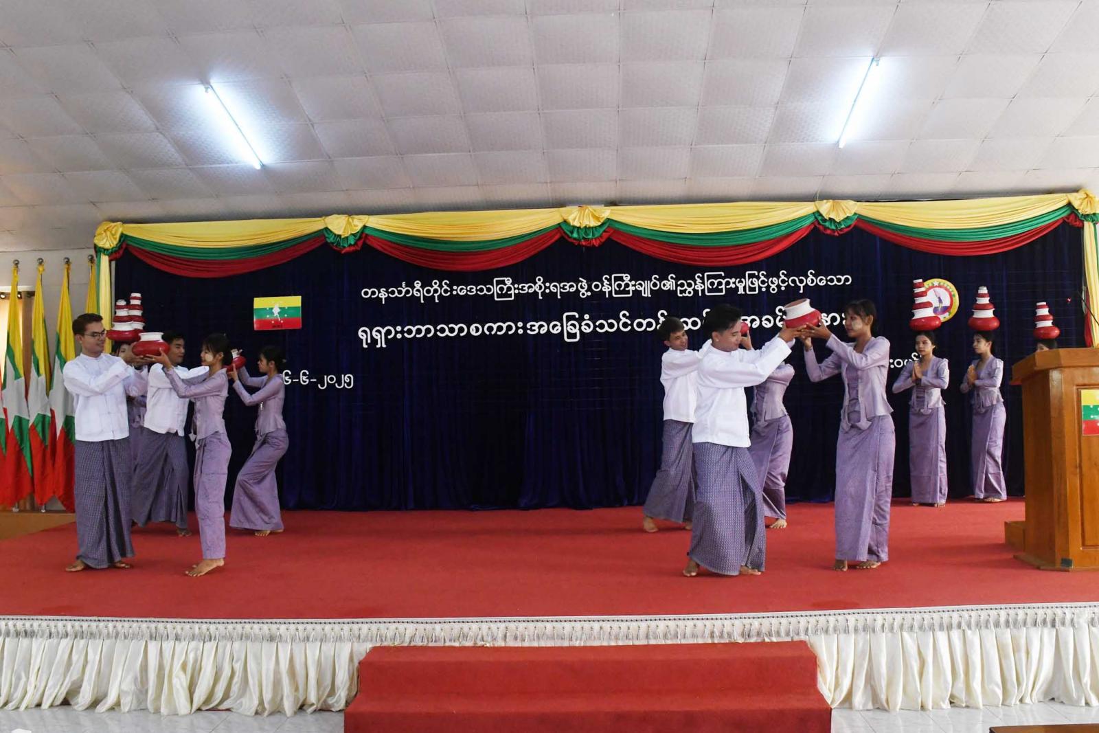 တနင်္သာရီတိုင်းဒေသကြီးအစိုးရအဖွဲ့ဝန်ကြီးချုပ်၏ ညွှန်ကြားမှုဖြင့် ဖွင့်လှစ်သော ရုရှားဘာသာစကားအခြေခံသင်တန်းဆင်းပွဲအခမ်းအနားကို ယနေ့နံနက် ၈ နာရီခွဲက ထားဝယ်မြို့၊ တိုင်းရင်းသားလူမျိုးရေးရာဝန်ကြီးဌာန၊ တနင်္သာရီတိုင်းဒေသကြီး ညွှန်ကြားရေးမှူးရုံး၌ ကျင်းပရာရှေးဦးစွာ သင်တန်းသား/သူများက စည်းလုံးခြင်းအတွက်သီချင်းတစ်ပုဒ် သီချင်းဖြင့် ဖျော်ဖြေတင်ဆက်သည်။
