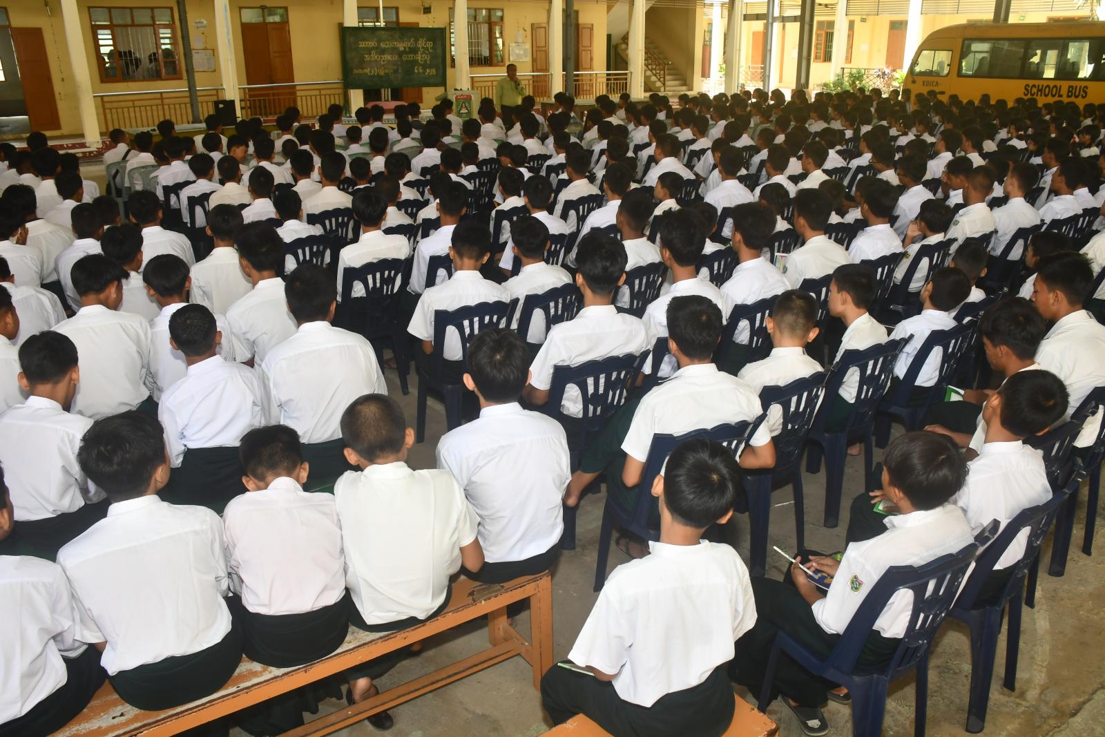 ထို့နောက် ပျဉ်းမနားမြို့နယ်စီမံအုပ်ချုပ်ရေးအဖွဲ့ဥက္ကဋ္ဌ ဦးမျိုးမင်းစိုးက ကျောင်းသား ကျောင်းသူများ ငလျင်ဘေးအန္တရာယ်နှင့် ကြုံတွေ့လာပါက နည်းစနစ်တကျ တုန့်ပြန်ကာကွယ်ခြင်းဖြင့် အသက်အန္တရာယ် ကင်းရှင်းစေရန်ရည်ရွယ်၍ ငလျင်ဘေးအန္တရာယ်ဆိုင်ရာ အသိပညာပေးဟောပြောပွဲနှင့် လက်တွေ့ သရုပ်ပြလေ့ကျင့်ခြင်းကို ဆောင်ရွက်ရခြင်းဖြစ်ကြောင်း ပြောကြားခဲ့သည်။