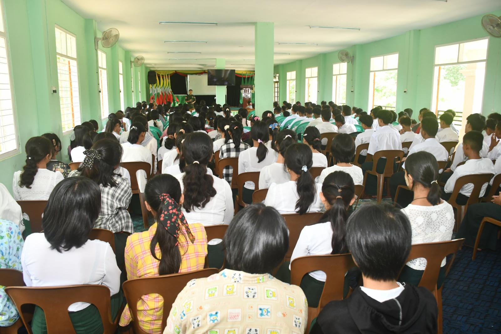 ရှေးဦးစွာ ငလျင်အသိပညာပေးဟောပြောပွဲနှင့် ငလျင်ဘေးအန္တရာယ်သဏ္ဍာန်တူ ဇာတ်တိုက်လေ့ကျင့် သရုပ်ပြသခြင်းကို အမှတ် (၂) အခြေခံပညာ အထက်တန်းကျောင်း၌ ကျင်းပရာ နေပြည်တော် ဘေးအန္တရာယ်ဆိုင်ရာစီမံခန့်ခွဲမှုဦးစီးဌာနမှ ညွှန်ကြားရေးမှူး ဦးစဝီလီဖရန့်က ငလျင်ဘေးအန္တရာယ်သည် ကြိုတင်ခန့်မှန်းနိုင်မှုမရှိကြောင်း၊ နေ့ညအချိန်မရွေးလှုပ်ခတ်နိုင်ပြီး အဖျက်စွမ်းအားကြီးမားသည့်ဘေးအန္တရာယ်တစ်ခုဖြစ်သည့်အတွက် ငလျင်၏သဘာဝများ၊ ငလျင်ကြောင့် အသက်အန္တရာယ် ကင်းရှင်းစေရေးအတွက် နေထိုင်ပြုမှုရမည့်အချက်များ ၊ ငလျင်လှုပ်နေစဉ် ဆောင်ရွက်ရန်အချက်များ၊ ငလျင်လှုပ်ပြီးနောက်ဆောင်ရွက်ရန်အချက်များအားပြောကြားခဲ့သည်။