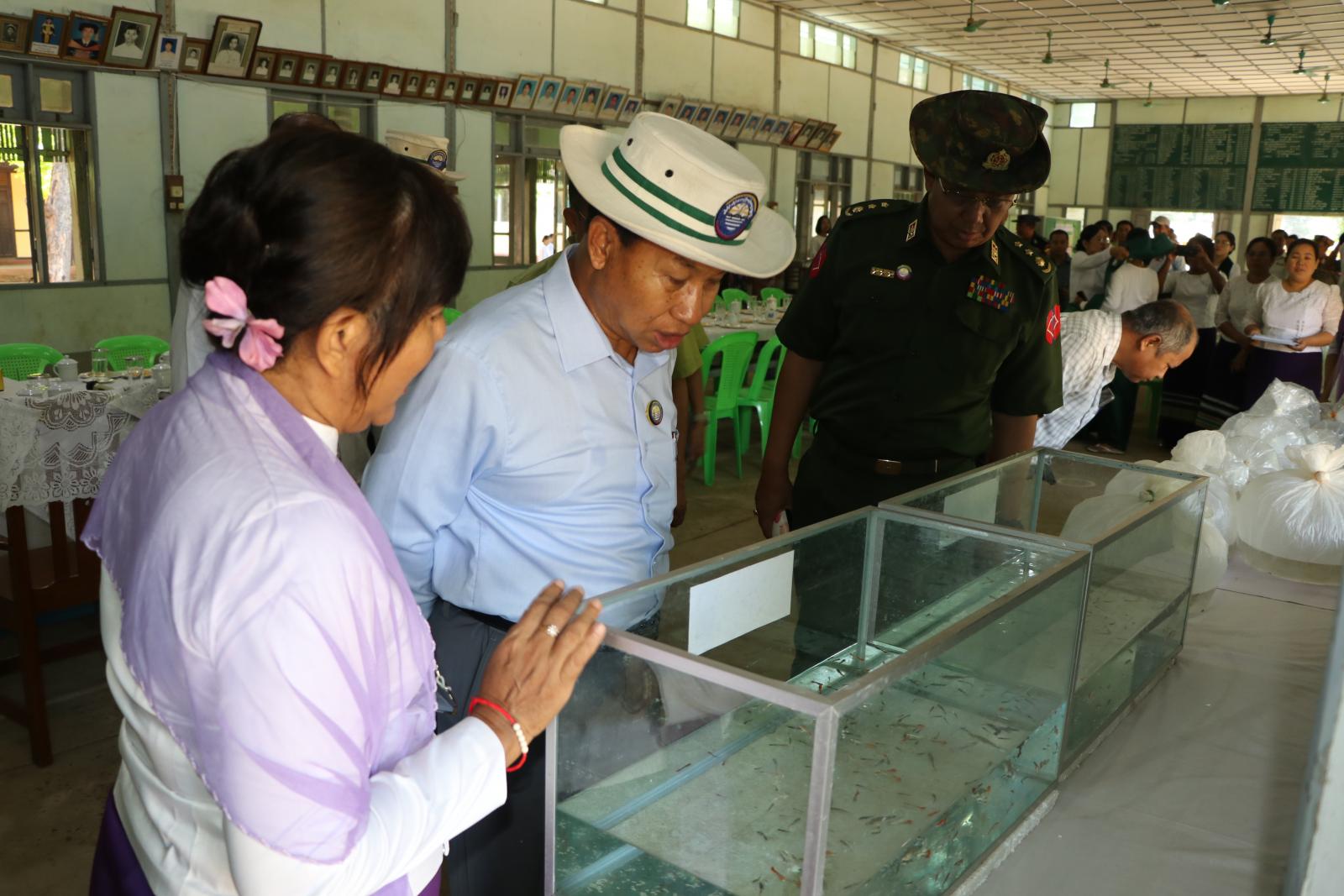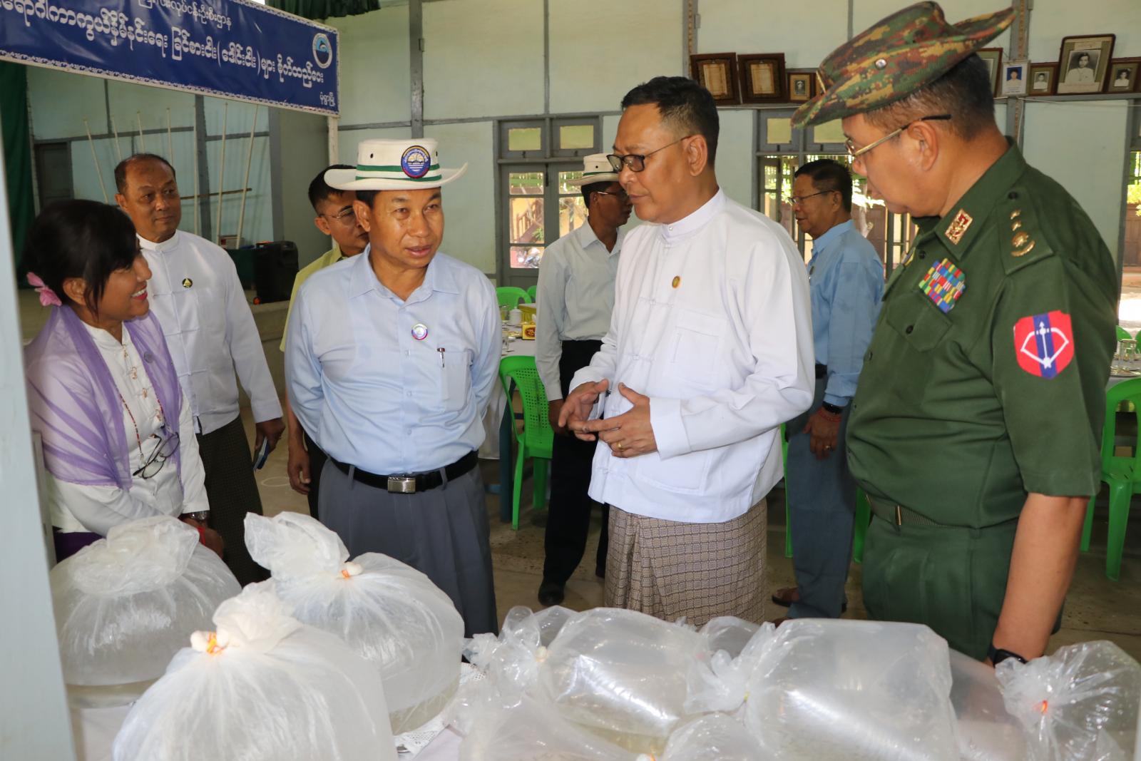 ယင်းနောက် တိုင်းဒေသကြီး ဝန်ကြီးချုပ်က တိုင်းဒေသကြီး ကျန်းမာရေးဦးစီးဌာန တိုင်းဒေသကြီး ဦးစီးမှူးထံ ခြင်စားငါး (ဒေါင်းငါး)များအားလည်းကောင်း၊ တိုင်းဒေသကြီး လုံခြုံရေးနှင့်နယ်စပ်ရေးရာဝန်ကြီးက တိုင်းဒေသကြီး ပညာရေးမှူးထံ ခြင်စားငါး (ဒေါင်းငါး) များအားလည်းကောင်း၊ တိုင်းဒေသကြီး ငါးလုပ်ငန်းဦးစီးဌာန တိုင်းဒေသကြီး ဦးစီးမှူးက တိုင်းဒေသကြီး ရဲတပ်ဖွဲ့မှူးထံ ခြင်စားငါး(ဒေါင်းငါး)များအားလည်းကောင်း အသီးသီး ဖြန့်ဝေပေးခဲ့ကြသည်။