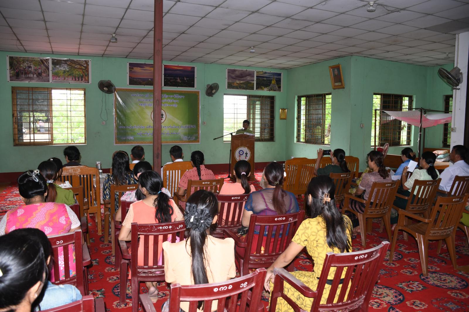 ၂၀၂၅-၂၀၂၆ ဘဏ္ဍာရေးနှစ် တိုင်းဒေသကြီးဘဏ္ဍာရန်ပုံငွေဖြင့် အကောင်အထည်ဖော်ဆောင်ရွက်သည့် အသေးစားကုန်ထုတ်လုပ်ငန်းများ ဖန်တီးပေးနိုင်ရေးနှင့် ကျေးလတ်နေမိသားစုဝင်ငွေတိုးရေးစီမံကိန်း၊ ဘေးဒဏ်သင့်ပြည်သူများအတွက် စီးပွားရေးလုပ်ငန်းများ ပြန်လည်ထူထောင်ပေးရန်အတွက် ခရိုင်အသေးစားစက်မှုလက်မှုလုပ်ငန်းဦးစီးဌာနမှကြီးမှူး၍ အခြေခံစက်ချုပ်နည်းပညာသင်တန်းဖွင့်ပွဲ အခမ်းအနားကို ဇွန်လ ၉ ရက် နံနက်ပိုင်းက ခါမင်းဝဲတောင်ကျောင်း၊ ဓမ္မာရုံ၌ ကျင်းပသည်။