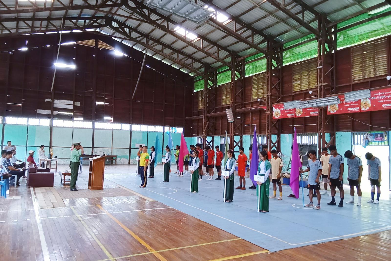 ရှေးဦးစွာ အားကစားသမားများက ကွင်းအတွင်းသတ်မှတ်ထားသည့်နေရာတို့တွင် အသီးသီးနေရာယူကြပြီး မြို့နယ်စီမံအုပ်ချုပ်ရေးအဖွဲ့အဖွဲ့ဝင် ဗိုလ်မှူး ရဲလင်းဦးက အဖွင့်အမှာစကားပြောကြားရာတွင် တစ်မျိုးသား လုံးကျန်းမာကြံ့ခိုင်ရေး၊လူငယ်လူရွယ်များ မူးယစ်ဆေးဝါးသုံးစွဲမှုမှ ကင်းဝေးလာစေရန်နှင့် အားကစားဘက်သို့ စိတ်ပါဝင်စားမှုဖြစ်ပေါ်စေရန်၊ ပြိုင်ပွဲများစဉ်ဆက်မပြတ်ကျင်းပပေးခြင်းဖြင့် မြို့နယ်အဆင့်၊ ခရိုင်အဆင့်၊ တိုင်းအဆင့် အားထားရသည့်အားကစားသမားကောင်းများ ပေါ်ထွက်လာစေရန်၊ ပိုက်ကျော်ခြင်း အားကစားအဆင့်အတန်းတိုးတက်မြှင့်မားရေးကို အထောက်အကူပြုစေရန်နှင့် မျိုးဆက်သစ်အားကစားသမားများ ပေါ်ထွက်စေရန်နှင့် အားကစားသမားများ အနေဖြင့်လည်း စည်းကမ်းတကျယဉ်ယဉ်ကျေးကျေး သန့်သန့်ရှင်းရှင်းဖြင့် မိမိအသင်းအောင်နိုင်ရေး ကို ကြိုးစားယှဉ်ပြိုင်ကစားသွားကြစေလိုကြောင်း ပြောကြားသည်။