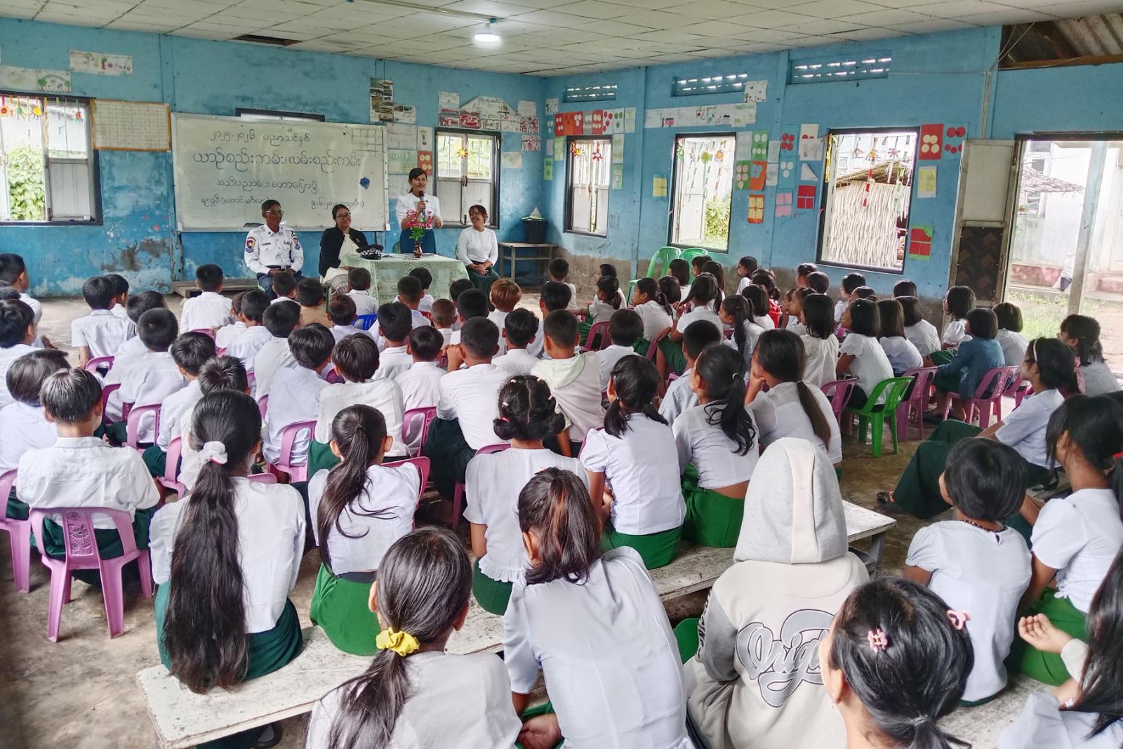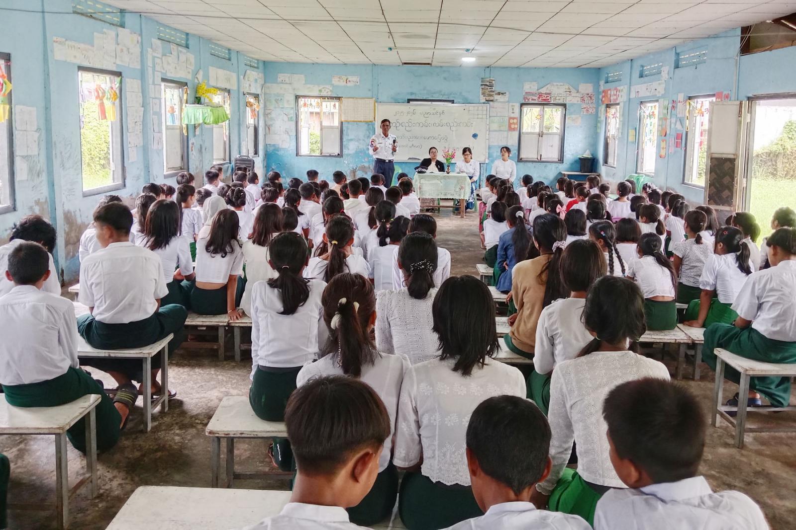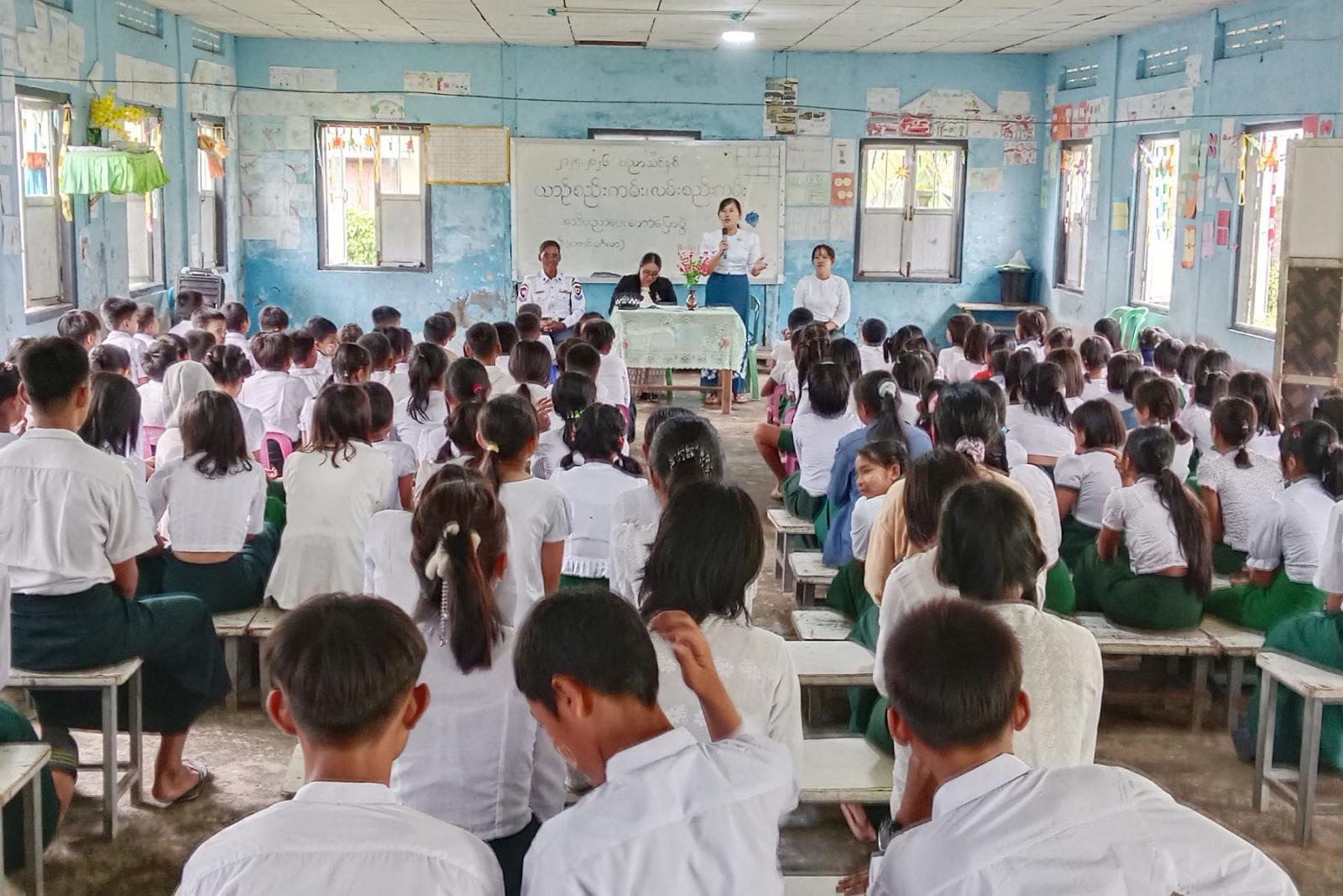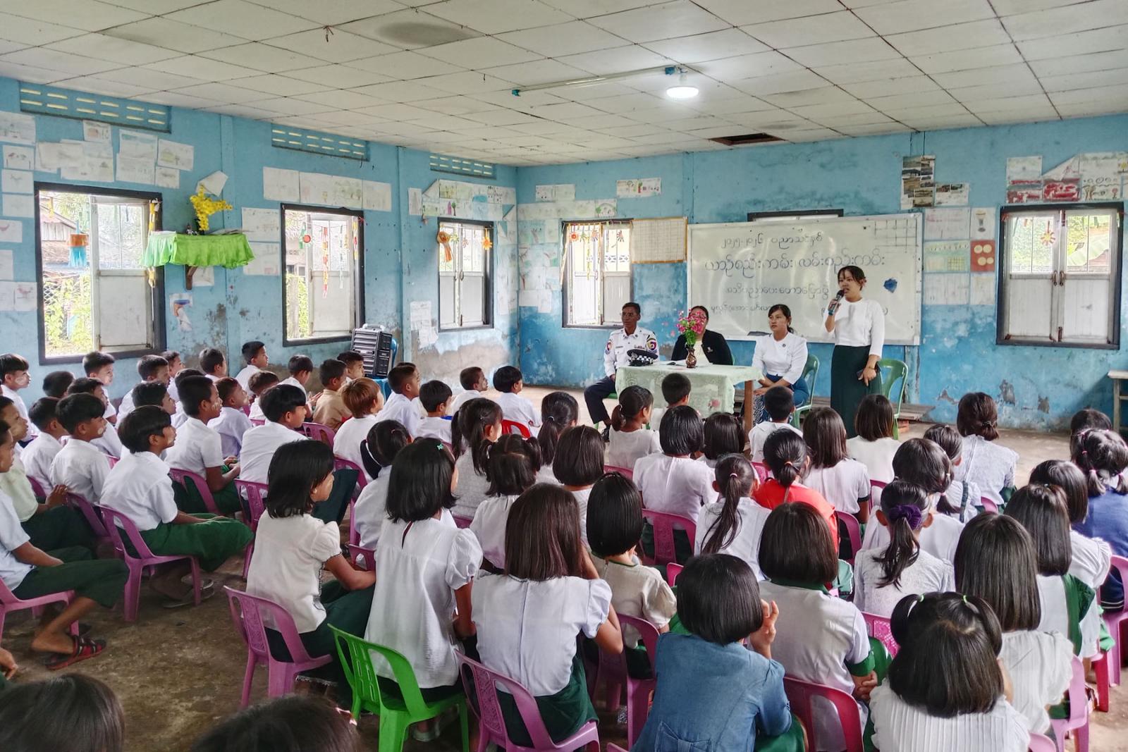 အဆိုပါအသိပညာပေးဟောပြောပွဲတွင် မူလွန်-အောင်မင်္ဂလာကျောင်းတာဝန်ခံကျောင်းအုပ်ဆရာမကြီး ဒေါ်မိုင်စုမွန်ကြည်က ကျောင်းအခြေပြု ကျောင်းသားကျောင်းသူများ ယာဉ်အန္တရာယ်ကင်းရှင်းစေရေး အသိပညာပေး ဟောပြောပွဲ ကျင်းပပြုလုပ်ရသည့် ရည်ရွယ်ချက်ကိုပြောကြားသည်။ ဆက်လက်၍ ဘုတ်ပြင်းမြို့နယ် မြို့နယ်ဥပဒေအရာရှိ ဒေါ်ယဉ်လဲ့မင်းဝေနှင့် မြို့နယ်ပြန်ကြားရေးနှင့် ပြည်သူ့ဆက်ဆံရေးဦးစီးဌာနမှ မြို့နယ်ဦးစီးမှူး ဒေါ်ဖြူဖြူသိန်းတို့နှင့် ဘုတ်ပြင်းမြို့နယ် ရဲတပ်ဖွဲ့မှူးရုံးမှ ရဲတပ်ကြပ်ကြီးသာဇံတို့က ကျောင်းသားကျောင်းသူများအနေဖြင့် ယာဉ်အန္တရာယ် ကင်းရှင်းစေရေး လိုက်နာဆောင်ရွက်ရမည့်အချက်များနှင့် လမ်းဖြတ်ကူးသွားလာရာတွင်လည်း သတိပြုဆောင်ရွက်ရမည့်အချက်များ၊ ယာဉ်စည်းကမ်း၊ လမ်းစည်းကမ်းဆိုင်ရာများ၊ မော်တော်ဆိုင် ကယ်စီးနင်းသူများ လိုက်နာဆောင်ရွက်ရမည့်စည်းကမ်းချက်များစသည့် အကြောင်းအရာများကို အသိပညာပေး အသီးသီး ဟောပြောခဲ့ကြကြောင်း သိရသည်။