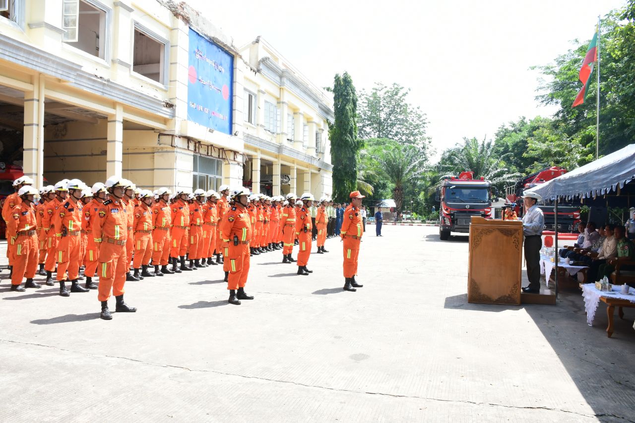 ဆက်လက်၍ နေပြည်တော်ကောင်စီဥက္ကဋ္ဌ ဦးသန်းထွန်းဦးသည် နေပြည်တော်ကောင်စီဝင်များ၊ တာဝန်ရှိသူများနှင့်အတူ ဇမ္ဗူသီရိမြို့နယ် နေပြည်တော် ဗဟိုမီးသတ်စခန်းသို့သွားရောက်ပြီး စုဖွဲ့ထားရှိသည့် ရှာဖွေကယ်ဆယ်ရေးတပ်ဖွဲ့ဝင်များအား တွေ့ဆုံ၍ နေပြည်တော်ကောင်စီဥက္ကဋ္ဌက အမှာစကားပြောကြားရာတွင် သဘာဝဘေးဖြစ်ပွားလာပါက အချိန်နှင့်တစ်ပြေးညီ တုန့်ပြန်ဆောင်ရွက်နိုင်ရေးနှင့် ကူညီကယ်ဆယ်ရေးလုပ်ငန်းများ ဆောင်ရွက်နိုင်ရေးအတွက် လူ၊ စက်ယန္တယား၊ စက်ကိရိယာများ အဆင်သင့် စနစ်တကျ စုဖွဲ့ဆောင်ရွက်ထားရှိရေး၊ ရေးဆွဲထားသည့် သဘာဝဘေးကြိုတင်ကာကွယ်ရေး စီမံချက်များနှင့်အညီ ဇတ်တိုက်လေ့ကျင့်ခြင်းများ ဆောင်ရွက်ထားရှိရေး၊ အခြေခံပညာကျောင်းများနှင့် ပြည်သူလူထုအား သဘာဝဘေးအသိပညာပေးလုပ်ငန်းများ ဆောင်ရွက်ရေး၊ ရှာဖွေကူညီကယ်ဆယ်ရေးအဖွဲ့များမှ စွမ်းဆောင်ရည်မြှင့်တင်နိုင်ရန်အတွက် အမြဲမပြတ်လေ့ကျင့်ဆောင်ရွက်ရေး၊ ရှာဖွေကယ်ဆယ်ရေးပစ္စည်းများကို ကျွမ်းကျင်ပိုင်နိုင်စွာ အသုံးချနိုင်ရေး၊ ဖြစ်ပွားနိုင်သည့် ဘေးအန္တရာယ်များကို ကြိုတင်မျှော်တွေးပြီး အမြဲတမ်းအသင့်ဖြစ်အောင် စုဖွဲ့လေ့ကျင့်ဆောင်ရွက်ထားရေးတို့ကို မှာကြားခဲ့သည်။ ယင်းနောက် နေပြည်တော်ကောင်စီဥက္ကဋ္ဌမှ နေပြည်တော်မီးသတ်တပ်ဖွဲ့ ဦးစီးမှူးအား သဘာဝဘေးကယ်ဆယ်ရေးလုပ်ငန်းတွင် အသုံးပြန်နိုင်ရန်အတွက် မီးစက်(5.5KVA) ငါးလုံး ပေးအပ်ပြီး ရှာဖွေကယ်ဆယ်ရေးတပ်ဖွဲ့ဝင်များအား လိုက်လံနှုတ်ဆက် အားပေးစကားပြောကြားကာ ရှာဖွေကယ်ဆယ်ရေးယာဉ်နှင့် စက်ပစ္စည်းများအား လှည့်လည်ကြည့်ရှုစစ်ဆေးပြီး စားသောက်ဖွယ်ရာများ ပေးအပ်ခဲ့သည်။