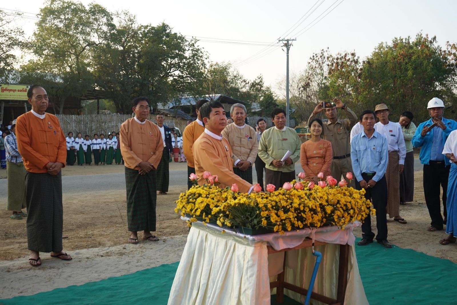 ယင်းနောက် ကျောင်းဆောင်သစ်လွှဲပြောင်း ပေးအပ်ပွဲအခမ်းအနာကို ကျင်းပရာ တိုင်းဒေသကြီးခေတ္တ ဝန်ကြီးချုပ်ဦးဇာနည်အောင်က အဖွင့်အမှာစကားပြောကြားပြီး အလှူရှင်မိသားစုတို့က ကျောင်း ဆောင်သစ်နှင့် ပတ်သက်သည့် စာရွက်စာတမ်း များကို ပေးအပ်ရာ ဒုတိယမြို့နယ်ပညာရေးမှူး ဦးစောလွင် က လက်ခံရယူပြီး ဂုဏ်ပြု မှတ်တမ်းလွှာ ပြန်လည် ပေးအပ်ခဲ့သည်။ ယင်းနောက် ကျောင်းအုပ် ဆရာမကြီးက ကျောင်းဆောင်သစ် ပေးအပ်ပွဲ အထိမ်း အမှတ်အလံကို တိုင်းဒေသကြီး ခေတ္တဝန်ကြီးချုပ်ထံ ပေးအပ်ခဲ့သည် ။ ယနေ့ ဖွင့်လှစ်ခဲ့သော ကျောင်းဆောင်သစ် ကို ရန်ကုန်မြို့နေ ဦးစိန်လှိုင် + ဒေါ်လှလှ (သား) ဦးကျော်လှိုင်+ ဒေါ်အေးအေးဝင်း မိသားစုတို့က ဆောက် လုပ်လှူဒါန်းခဲ့ ခြင်းဖြစ်ပြီး အလျား( ၆ဝ )ပေ ၊ အနံ(၃၀) ပေ ရှိ သွပ်မိုး အုတ်ကာ တစ်ထပ် ကျောင်းဆောင် ဖြစ်ကြောင်းသိရသည်။