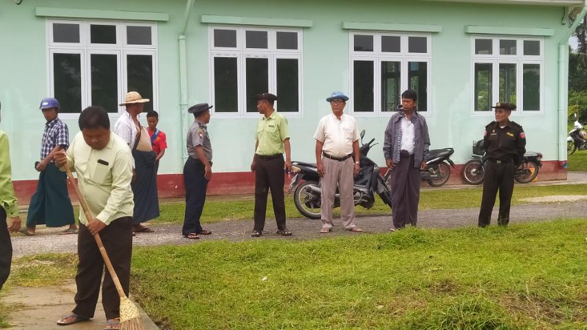 အဆိုပါစုပေါင်းသန့်ရှင်းရေးဆောင်ရွက်ရာသို့ မြို့နယ်စီမံအုပ်ချုပ်ရေးအဖွဲ့ဥက္ကဋ္ဌ ဦးမင်းအောင်နှင့် ထွေထွေအုပ်ချုပ်ရေးဝန်ထမ်းများ၊ မြို့နယ်ရဲတပ်ဖွဲ့မှူး ရဲမှူးဌေးဝင်းနှင့် ရဲတပ်ဖွဲ့ဝင်များ၊ မြို့နယ်မီးသတ်ဦးစီးဌာနမှ မီးသတ်တပ်ဖွဲ့ဝင်များ၊ မြို့နယ်စည်ပင်သာယာရေးအဖွဲ့မှ အမှုဆောင်အရာရှိ (ဒုတိယညွှကြားရေးမှူး) ဦးစိုးအောင်နှင့်ဝန်ထမ်းများ၊ ဌာနဆိုင်ရာအကြီးအကဲများနှင့် ဝန်ထမ်းများ၊ ရပ်ကွက်အုပ်ချုပ်ရေးမှူးများနှင့်ပြည်သူများ၊ စုစုပေါင်းအင်အား (၁၅၀)ဦးခန့် စုပေါင်းသန့်ရှင်းရေးဆောင်ရွက်ခဲ့ကြောင်း သိရသည်။