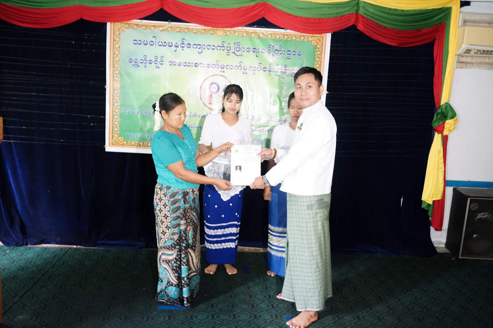 အဆိုပါအခမ်းအနားတွင် ရွှေဘိုခရိုင် အသေးစားစက်မှုလက်မှုလုပ်ငန်းဦးစီးဌာန ခရိုင်ဦးစီးမှူး ဦးလင်းထက်အောင်က “လူသုံးကုန်ထုတ်လုပ်မှု နည်းပညာသင်တန်းသည် မိသားစုများအတွက် ဝင်ငွေတိုးပွားရေး အထောက်အကူဖြစ်စေမည့် သင်တန်းဖြစ်ကြောင်း၊ သင်တန်းသား/သူများအနေဖြင့် သင်တန်းမှသင်ကြားပေးလိုက်သည့် နည်းပညာများကို အသုံးချကာ ကိုယ်ပိုင်အသုံး အဆောင်ထုတ်ကုန်များ ထုတ်လုပ်နိုင်မည်ဖြစ်ပြီး၊ ထိုကဲ့သို့သော ကျွမ်းကျင်မှုများမှ ဝင်ငွေဖန်တီးနိုင်ပြီး မိသားစုဝင်ငွေ တိုးပွားလာမည်ဖြစ်ကြောင်း” ပြောကြားခဲ့ပြီးနောက် သက်ဆိုင်ရာ တာဝန်ရှိသူများက သင်တန်းဆင်းလက်မှတ်နှင့်သင်တန်းထုတ်ကုန်များကို အသီးသီးပေးအပ်ခဲ့ကြာင်း သိရသည်။