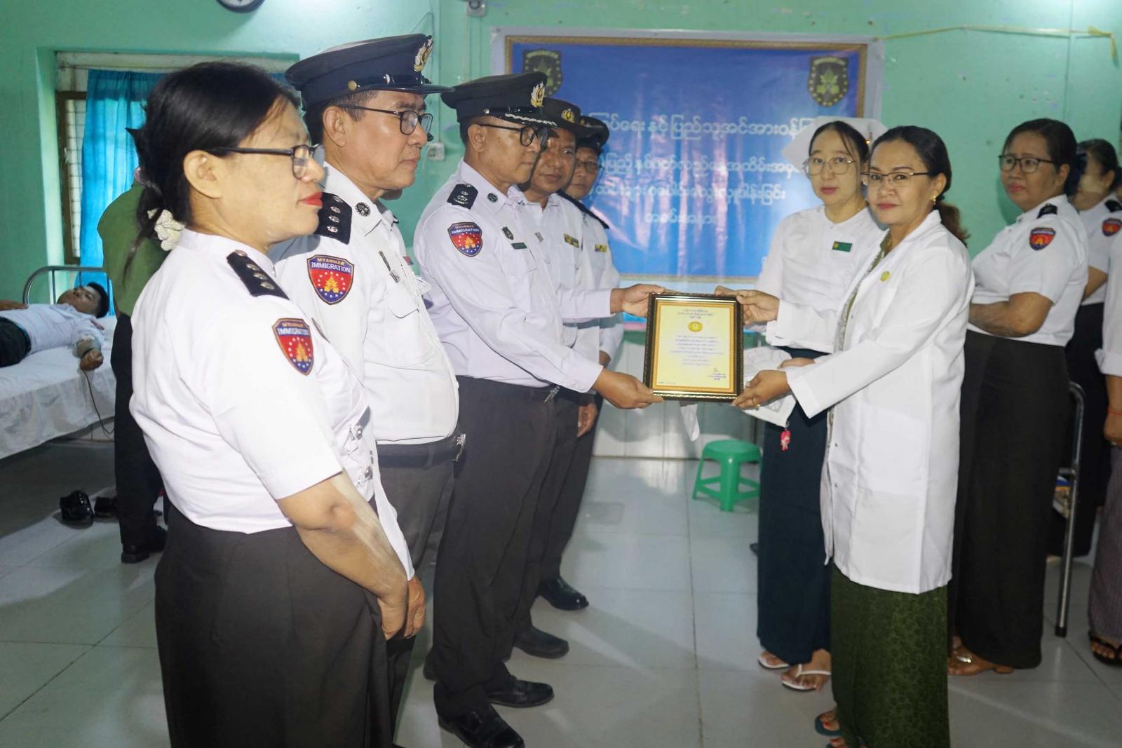 ထို့နောက် မိတ္ထီလာမြို့ ခုတင် (၂၀၀)ဆံ့ ပြည်သူ့ဆေးရုံကြီးရှိ သွေးလှူဘဏ်သို့ လူဝင်မှုကြီးကြပ်ရေးနှင့်ပြည်သူ့အင်အားဝန်ကြီး ဌာန နှစ် (၃၀)ပြည့် နှစ်ပတ်လည်နေ့အထိမ်းအမှတ်အားဂုဏ်ပြုသောအားဖြင့် စုပေါင်းသွေးလှူဒါန်းသည့် လူဝင်မှုကြီး ကြပ်ရေးနှင့်ပြည်သူအင်အားဝန်ကြီးဌာနအား ဆေးရုံအုပ် ဒေါက်တာကလျာဝင့်က ဂုဏ်ပြုမှတ်တမ်းလွှာ ပြန်လည်ပေးအပ်ခဲ့ပြီး အဆိုပါ စုပေါင်းသွေးလှူဒါန်းခဲ့ကြသည့် ဝန်ထမ်းများအား ခရိုင်စီမံအုပ်ချုပ်ရေးအဖွဲ့ဥက္ကဋ္ဌ ခရိုင်အုပ်ချုပ်ရေးမှူးဦးအောင်မြင့်ဦး၊ လူဝင်မှု ကြီးကြပ်ရေးနှင့်ပြည်သူအင်အားဝန်ကြီးဌာန မိတ္ထီလာခရိုင် ဦးစီးမှူး ဒုတိယညွှန်ကြားရေးမှူး ဦးနိုင်ဝင်းကျော်နှင့် တာဝန်ရှိသူများက ဖြည့်စွက်အာဟာရအဖြစ် ကြက်ဥ၊ နွားနို့နှင့် ငွေကျပ် ၁၀၀၀၀ စီတို့ကို ပေးအပ်ခဲ့ကြောင်း သိရသည်။