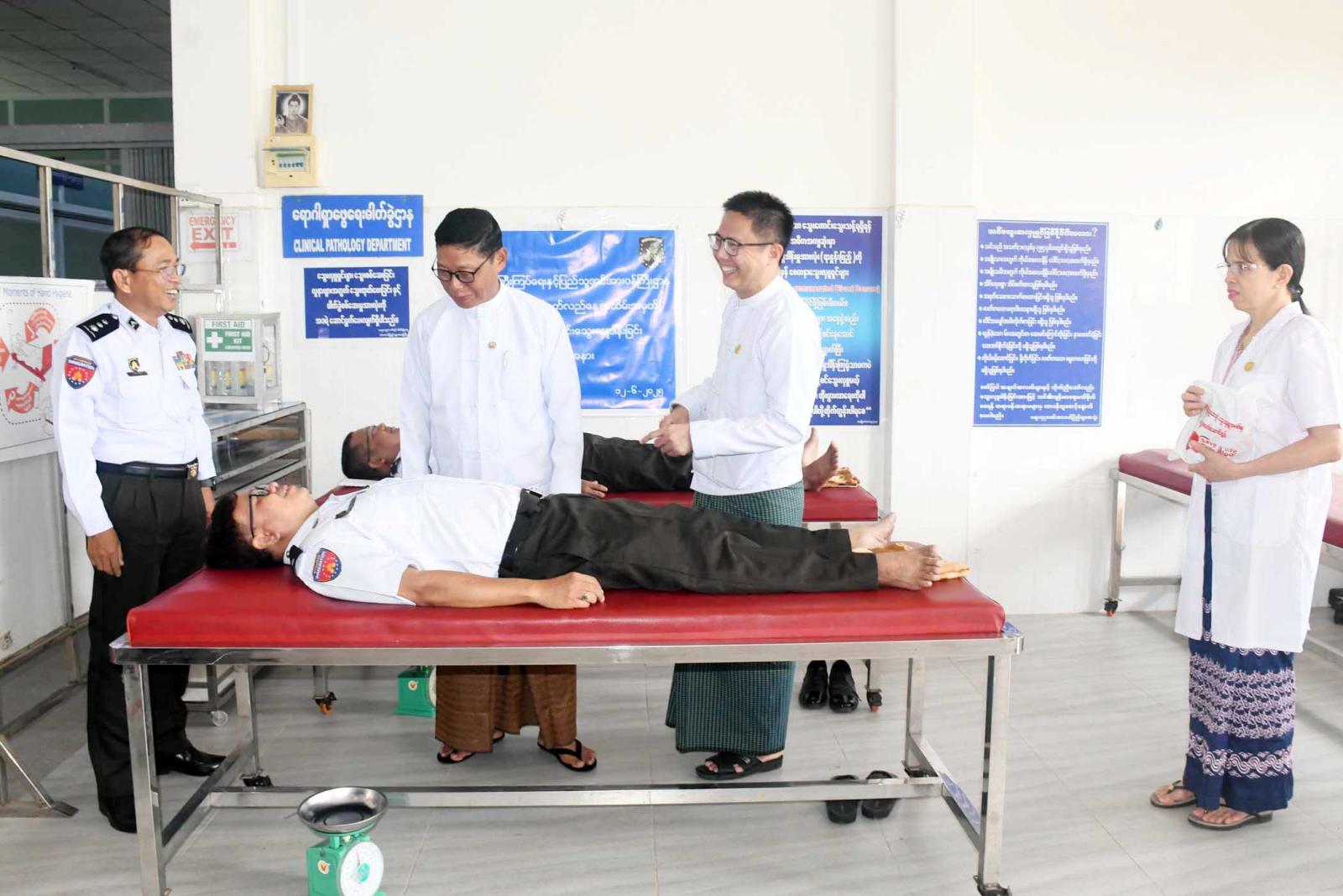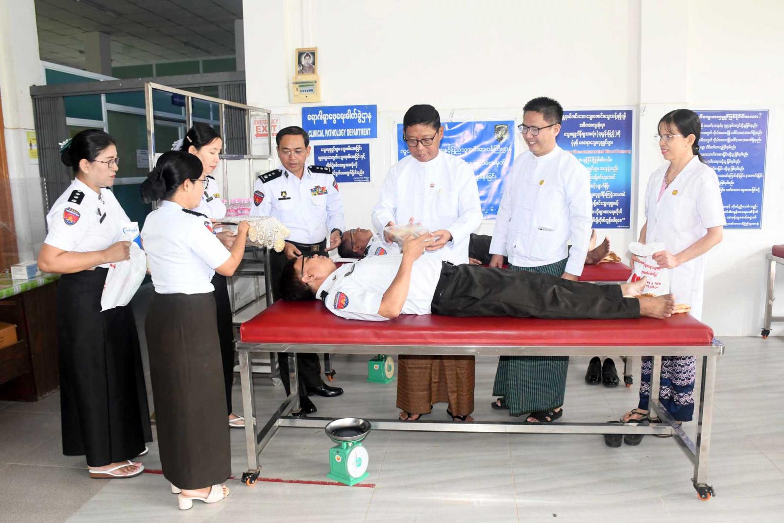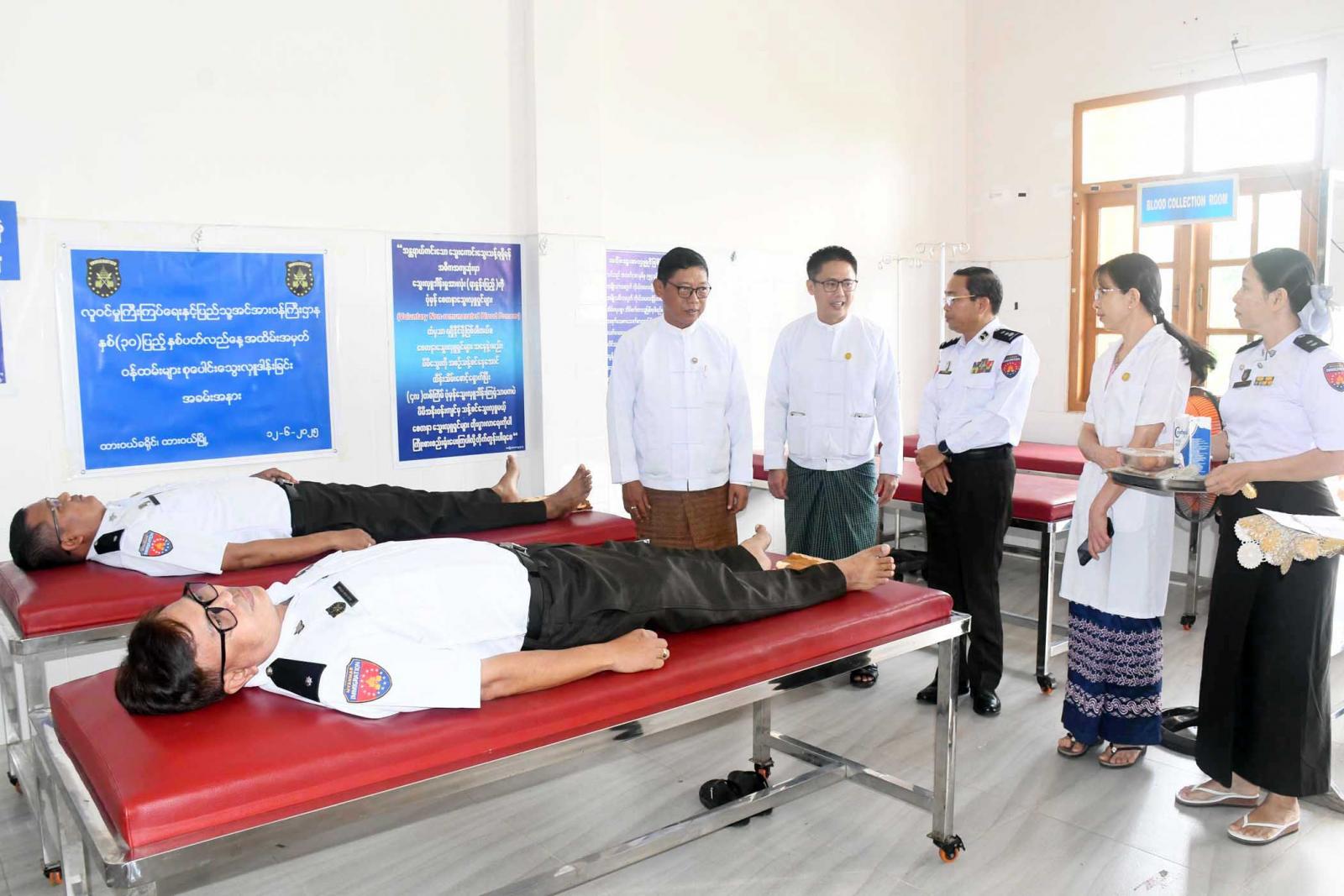 စုပေါင်းသွေးလှူဒါန်းပွဲသို့ တိုင်းဒေသကြီးအစိုးရအဖွဲ့ လူမှုရေးရာဝန်ကြီးဦးသက်နိုင်၊ လူဝင်မှုကြီးကြပ်ရေးနှင့်ပြည်သူ့အင်အားဝန်ကြီးဌာန၊ တိုင်းဒေသကြီးဦးစီးမှူး ဦးယဉ်ထွေးနှင့်တာဝန်ရှိသူများက တိုင်းဒေသကြီး/ခရိုင်/မြို့နယ်ဝန်ထမ်းများ စုပေါင်းသွေးလှူဒါန်းနေမှုအား လှည့်လည်ကြည့်ရှုအားပေးပြီး သွေးလှူဒါန်းကြသူများအား အာဟာရဖြည့်စားသောက်ဖွယ်ရာနှင့် လက်ဆောင်ပစ္စည်းများပေးအပ်သည်။