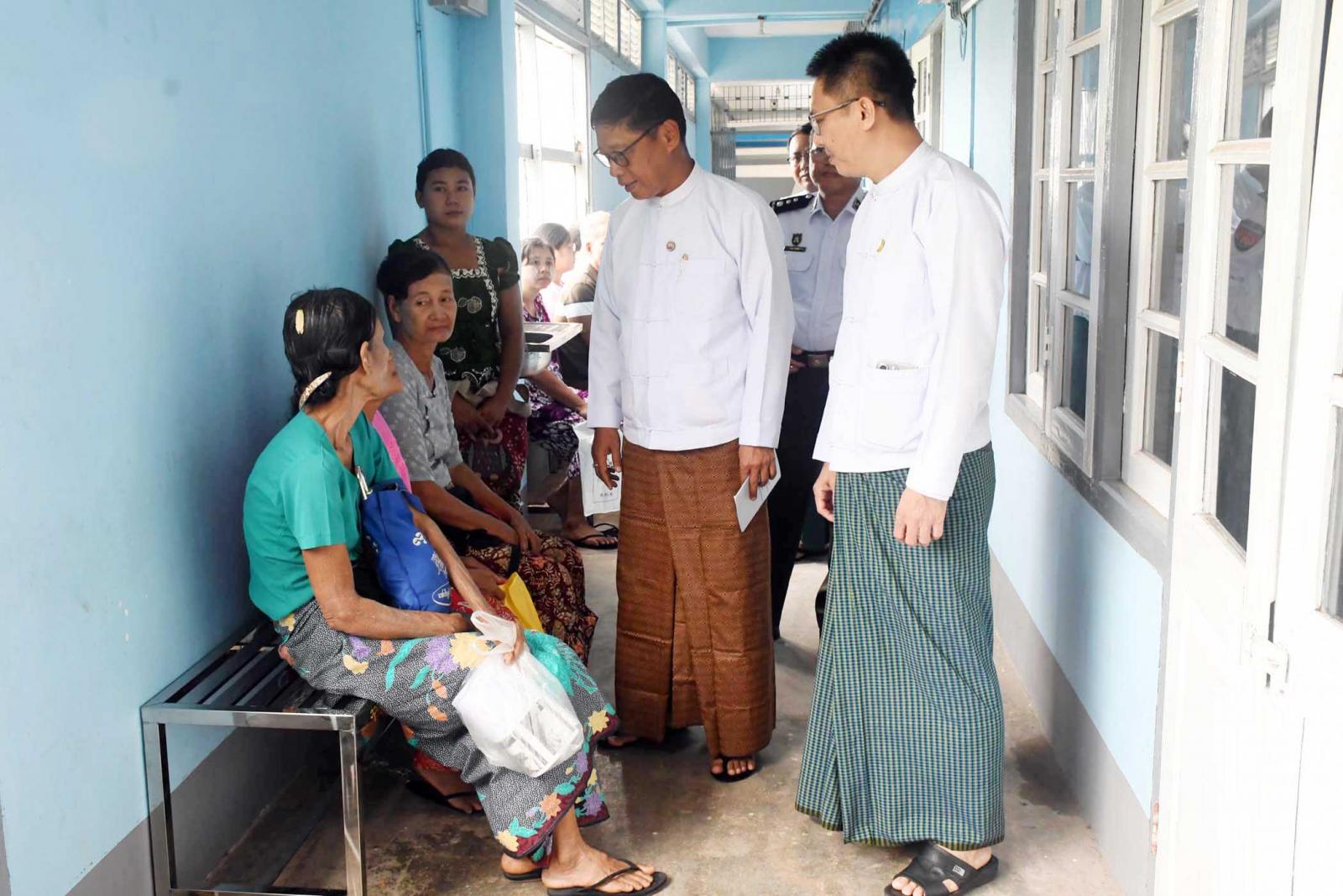 ဆက်လက်၍တိုင်းဒေသကြီးအစိုးရအဖွဲ့လူမှုရေးရာဝန်ကြီးက ထားဝယ်ပြည်သူ့ဆေးရုံကြီး၌ ဆေးဝါးကုသမှုခံယူရန် လာရောက်လျက်ရှိသည့်ဝေဒနာရှင်များ၊ မျက်စိဝေဒနာရှင်များ၊ ကိုယ်ဝန်ဆောင် အမျိုးသမီးများ၊ ကလေးမိခင်များအား ရင်းရင်းနှီးနှီးလိုက်လံနှုတ်ဆက်သည်။