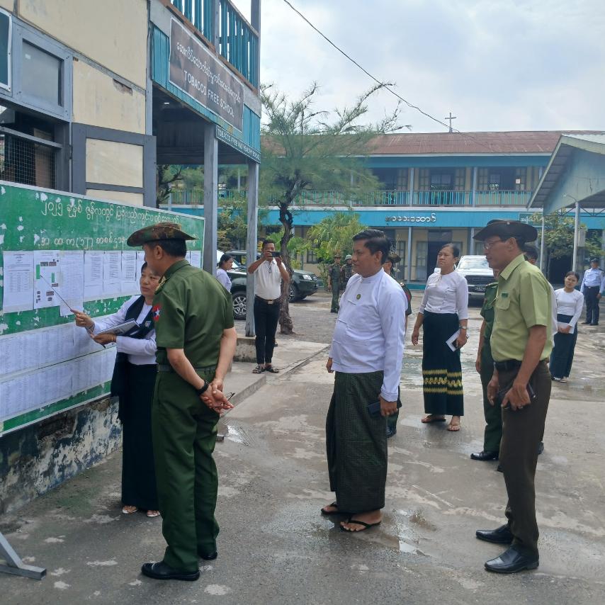 တက္ကသိုလ်ဝင်စာမေးပွဲပြန်လည်ဖြေဆိုမည့် ကျောင်းများအား ကာကွယ်ရေးဝန်ကြီးဌာနမှ ဒုတိယဗိုလ်ချုပ်ကြီး မျိုးမိုးအောင်နှင့်တာဝန်ရှိသူများ၊ ချမ်းအေးသာစံမြို့နယ်၊ မြို့နယ်အထွေထွေအုပ်ချုပ်ရေးမှူး ဦးထွန်းထွန်းဝင်း၊ မြို့နယ်စီမံအုပ်ချုပ်ရေးအဖွဲ့ဝင်(၁) ဗိုလ်မှူး အေးလင်းထွန်း၊ တိုင်းပညာရေးမှူးရုံးမှ ညွှန်ကြားရေးမှူး ဉီးအောင်ဆွေဉီး မဟာအောင်မြေခရိုင် ပညာရေးမှူး ဒေါက်တာသက်လှစု မြို့နယ်ပညာရေးမှူး ဒေါ်ဝါဝါကျော်၊ မန္တလေးမြို့တော်စည်ပင်မှ ဦးစီးမှူး ဦးလင်းဝင်းထွန်းတို့သည် Grade -12 စာမေးပွဲဖြေဆိုမည့် ပြင်ဆင်ထားမှုအခြေနေများအား ကြည့်ရှူခဲ့ပြီး လိုအပ်ချက်များအား ညွှန်ကြားခဲ့သည်။