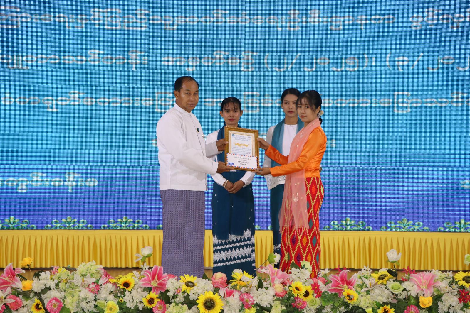 ထို့နောက် တိုင်းဒေသကြီးဝန်ကြီးချုပ်က ကွန်ပျူတာသင်တန်း နည်းပြဆရာမထံ ဂုဏ်ပြုချီးမြှင့်ငွေနှင့် ဂုဏ်ပြုမှတ်တမ်းလွှာအားလည်းကောင်း၊ တိုင်းဒေသကြီး အမျိုးသမီးရေးရာ အဖွဲ့နာယက၊ တိုင်းဒေသကြီး ဝန်ကြီးချုပ်၏ဇနီးက အခြေခံတရုတ်စကားပြော သင်တန်းနည်း ပြဆရာမထံ ဂုဏ်ပြုချီးမြှင့်ငွေနှင့် ဂုဏ်ပြုမှတ်တမ်းလွှာအားလည်းကောင်း၊ တိုင်းဒေသကြီး တရားသူကြီးချုပ်က အခြေခံဂျပန်စကားပြော သင်တန်းနည်းပြဆရာမထံ ဂုဏ်ပြုချီးမြှင့်ငွေနှင့် ဂုဏ်ပြုမှတ်တမ်းလွှာအား လည်းကောင်း ပေးအပ်ချီးမြှင့်ကြသည်။