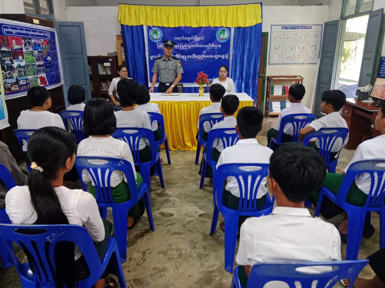 အဆိုပါဆွေးနွေးပွဲတွင် သရက်ချောင်းမြို့နယ်၊ ရဲတပ်ဖွဲ့မှ ဒု-ရဲအုပ် ဌေးမောင်က အသိပညာပေးဟောပြောရာ မူးယစ်ဆေးဝါးအန္တရာယ်သည် တိုင်းပြည်၏အနာဂတ်ကို ကြီးမားသည့် ခြိမ်းခြောက်မှုအန္တရာယ်တစ်ခုဖြစ်သောကြောင့် ကျောင်းသား/သူများအနေဖြင့် မူးယစ်ဆေးဝါးရဲ့အန္တရာယ်ကို သိရှိနားလည်ရှောင်ရှားတတ်ရန်၊ မူးယစ်ဆေးသုံးရခြင်း အဓိကအကြောင်းအရင်းများ၊ မူးယစ်ဆေးသုံးစွဲခြင်းကြောင့် ဖြစ်ပွားတတ်သော ရုပ်ပိုင်း/စိတ်ပိုင်းဆိုင်ရာဆိုးကျိုးများ၊ မူးယစ်ဆေးဝါးသုံးစွဲခြင်းနှင့် ရောင်းဝယ်ခြင်းပြုလုပ်ပါက အရေးယူခံရမည့် ဥပဒေပြစ်မှု/ပြစ်ဒဏ်များအကြောင်းရှင်းလင်းခြင်း၊ နိုင်ငံတည်ငြိမ်အေးချမ်းမှုကို ခြိမ်းခြောက်တိုက်ခိုက်လာသော မူးယစ်ဆေးဝါးအသုံးချမှုများကိုအမြစ်ပြတ်သည်အထိ တိုက်ဖျက်ရာတွင် ကျောင်းသား/သူများအနေဖြင့် တစ်ဖက်တစ်လမ်းမှ ဝိုင်းဝန်းကူညီကြရန် ရှင်းလင်းပြောကြားခဲ့ပြီးနောက် ကျောင်းသား/သူများနှင့် အပြန်အလှန်ဆွေးနွေးခဲ့သည်။