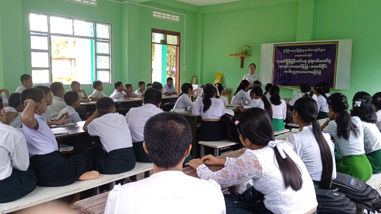 ထို့နောက်ကျောင်းသား/သူများက အသိပညာဗဟုသုတရစေသည့် သုတ/ရသစာအုပ်စာစောင်များအား စိတ်ဝင်တစားဖတ်ရှုလေ့လာခဲ့ကြပြီး အဆိုပါစာအုပ်များဖြင့် စာဖတ်ဝိုင်းများဆောင်ရွက်၍ ဖတ်ရှုခဲ့ကြသည့်စာအုပ်များမှ ဗဟုသုတရရှိစေသည့် အကြောင်းအရာများအား ပြန်လည်ဆွေးနွေးခဲ့ကြသည်။ ယင်းနောက်ကျောင်းသား/သူများက ပြန်ကြားရေးနှင့်ပြည်သူ့ဆက်ဆံရေးဦးစီးဌာနမှ ခင်းကျင်းပြသထားသော လူကုန်ကူးမှုအန္တရာယ်တားဆီးကာကွယ်ရေး အသိပညာပေး၊ မူးယစ်ဆေးဝါးအန္တရာယ်တားဆီးကာကွယ်ရေးအသိပညာပေးနှင့် ပလတ်စတစ်ညစ်ညမ်းမှုတိုက်ဖျက်ရေးဆိုင်ရာ အသိပညာပေးနံရံကပ်စာစောင်များအား စိတ်ပါဝင်စားစွာ လေ့လာကြည့်ရှုခဲ့ကြောင်း သိရသည်။
