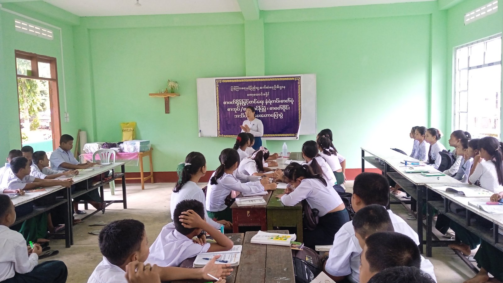 အသိပညာပေးဆောင်ရွက်ရာတွင် ခရိုင်ပြန်ကြားရေးနှင့်ပြည်သူ့ဆက်ဆံရေးဦးစီးဌာန ဦးစီးအရာရှိ ဒေါ်မေဇင်ဦးက စာဖတ်စွမ်းရည်တိုးတက်စေရန်နှင့် အသိပညာဗသုတများတိုးပွားစေရန် အားလပ်ချိန်များတွင် ဗဟုသုတရရှိသည့် စာအုပ်စာစောင်များအား ဖတ်ရှုလေ့လာရန်၊ ကျောင်းသား/သူများအနေဖြင့် ကျောင်းစာပညာရပ်များသာမက ဗလငါးတန်နှင့်ပြည်စုံ၍ အကျင့်စာရိတ္တကောင်းမွန်ပြီး အသိဉာဏ်ပညာဖွံ့ဖြိုးသူများဖြစ်စေရန် ပြင်ပစာအုပ်၊ စာပေတို့ကိုလေ့လာရန်နှင့် ကျောင်းသား၊ကျောင်းသူများအနေဖြင့် စာဖတ်သည့်အလေ့အကျင့်ပြုစုပျိုးထောင်ကြရန်လိုအပ်ကြောင်း ၊စာဖတ်ခြင်းမှရရှိသည့် အကျိုးကျေးဇူးများနှင့် သုတ၊ ရသစာပေအမျိုးအစားများအကြောင်း အသိပညာပေးဟောပြောခဲ့သည်။